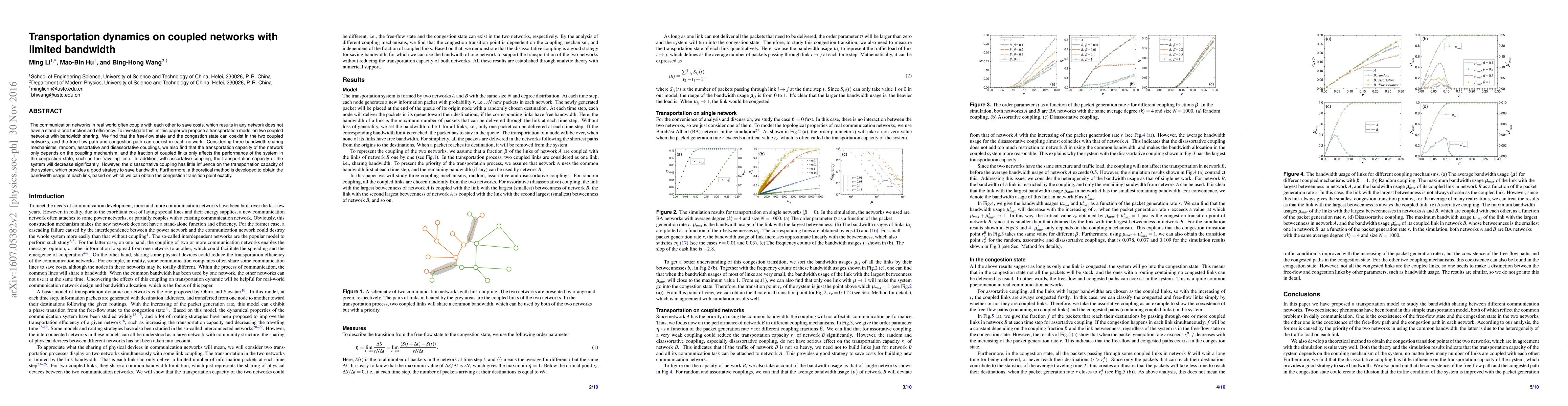 Researchers studied how transportation networks work together with limited bandwidth, finding that coupling mechanisms affect congestion levels and travel times. Disassortative coupling is a promising strategy to save bandwidth while minimizing negative impacts on transportation capacity.