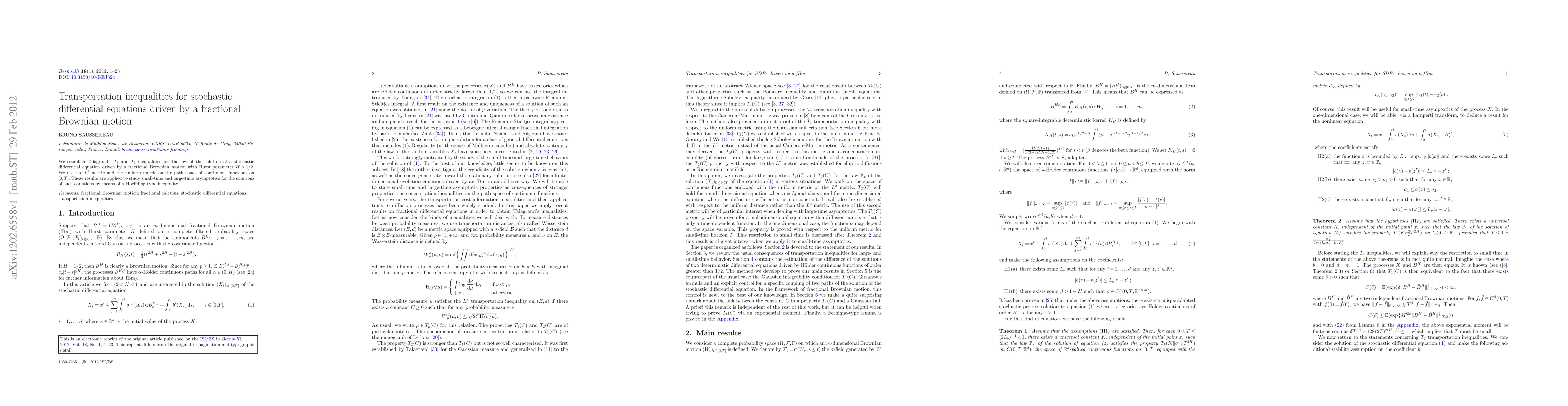 This paper establishes Talagrand's $T_1$ and $T_2$ inequalities for stochastic differential equations driven by fractional Brownian motion with Hurst parameter $H>1/2$. The results are applied to analyze the small-time and large-time asymptotics of solutions using a Hoeffding-type inequality.