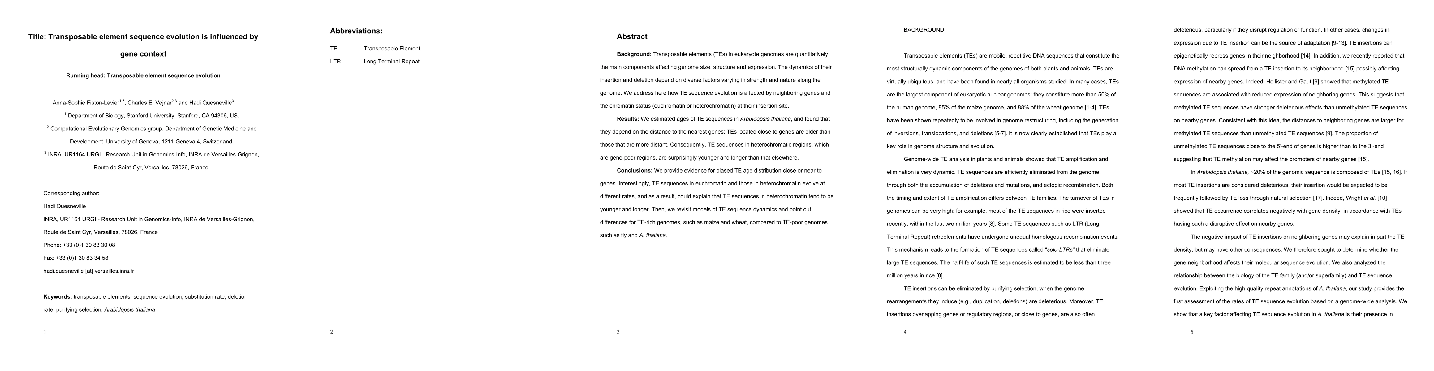 Background: Transposable elements (TEs) in eukaryote genomes are quantitatively the main components affecting genome size, structure and expression. The dynamics of their insertion and deletion depend on diverse factors varying in strength and nature along the genome. We address here how TE sequence evolution is affected by neighboring genes and the chromatin status (euchromatin or heterochromatin) at their insertion site. Results: We estimated ages of TE sequences in Arabidopsis thaliana, and found that they depend on the distance to the nearest genes: TEs located close to genes are older than those that are more distant. Consequently, TE sequences in heterochromatic regions, which are gene-poor regions, are surprisingly younger and longer than that elsewhere. Conclusions: We provide evidence for biased TE age distribution close or near to genes. Interestingly, TE sequences in euchromatin and those in heterochromatin evolve at different rates, and as a result, could explain that TE sequences in heterochromatin tend to be younger and longer. Then, we revisit models of TE sequence dynamics and point out differences for TE-rich genomes, such as maize and wheat, compared to TE-poor genomes such as fly and A. thaliana.