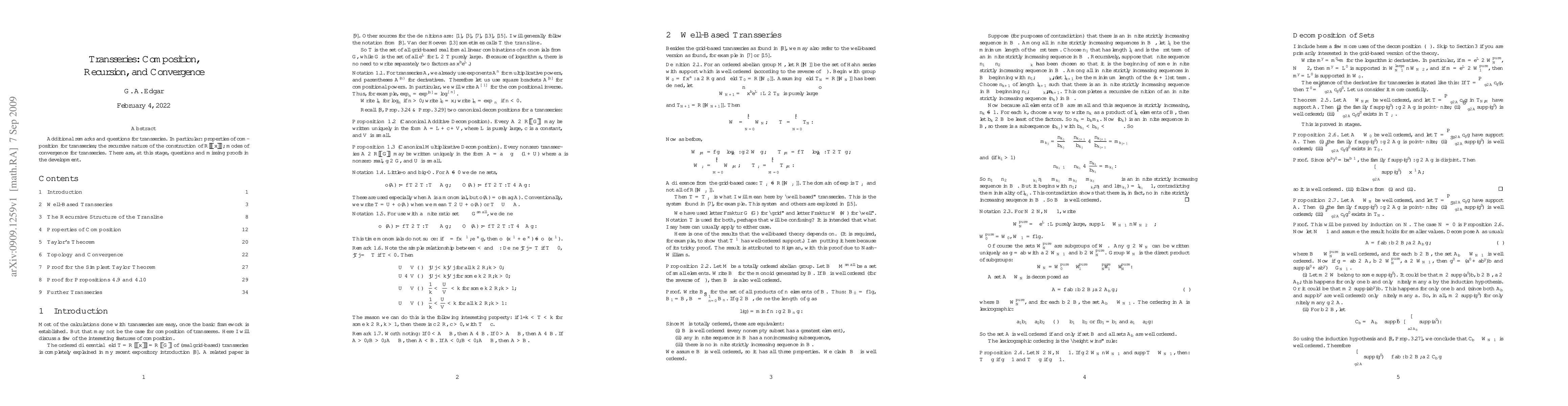 This paper explores the properties of composition, recursion, and convergence in transseries, focusing on the construction of R[[[ x ]]] and identifying gaps in existing proofs and questions regarding these mathematical objects. It aims to clarify and extend the theoretical framework for transseries.