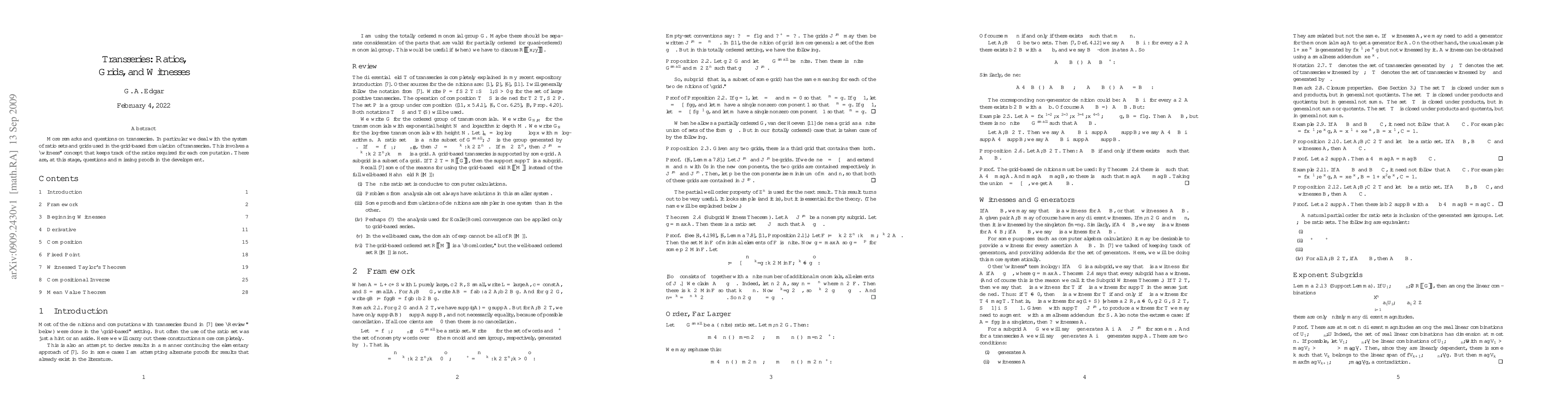 More remarks and questions on transseries. In particular we deal with the system of ratio sets and grids used in the grid-based formulation of transseries. This involves a "witness" concept that keeps track of the ratios required for each computation. There are, at this stage, questions and missing proofs in the development.