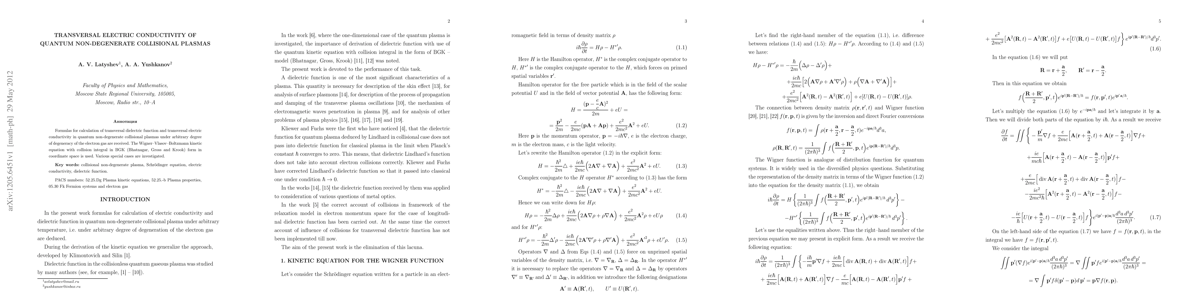 This paper derives formulas for calculating transversal dielectric function and electric conductivity in quantum non-degenerate collisional plasmas, utilizing the Wigner-Vlasov-Boltzmann kinetic equation with a BGK collision integral. Various special cases are examined to understand the behavior under different degrees of electron gas degeneracy.