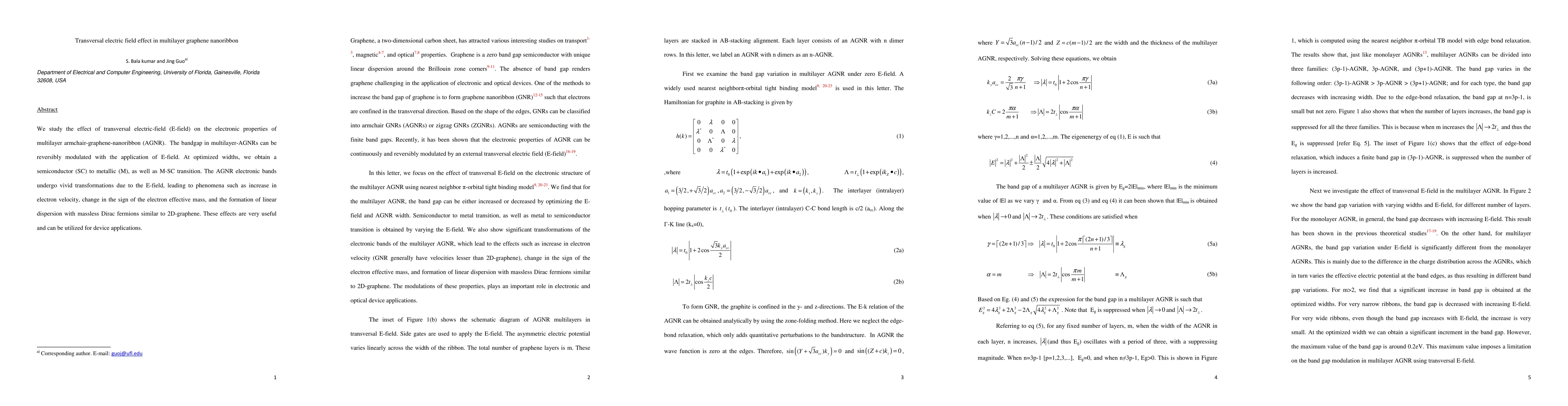 This research investigates how transversal electric fields impact the electronic properties of multilayer armchair-graphene-nanoribbons, revealing reversible bandgap modulation and transitions between semiconductor and metallic states, along with phenomena like increased electron velocity and formation of massless Dirac fermions. These findings have potential for advanced device applications.