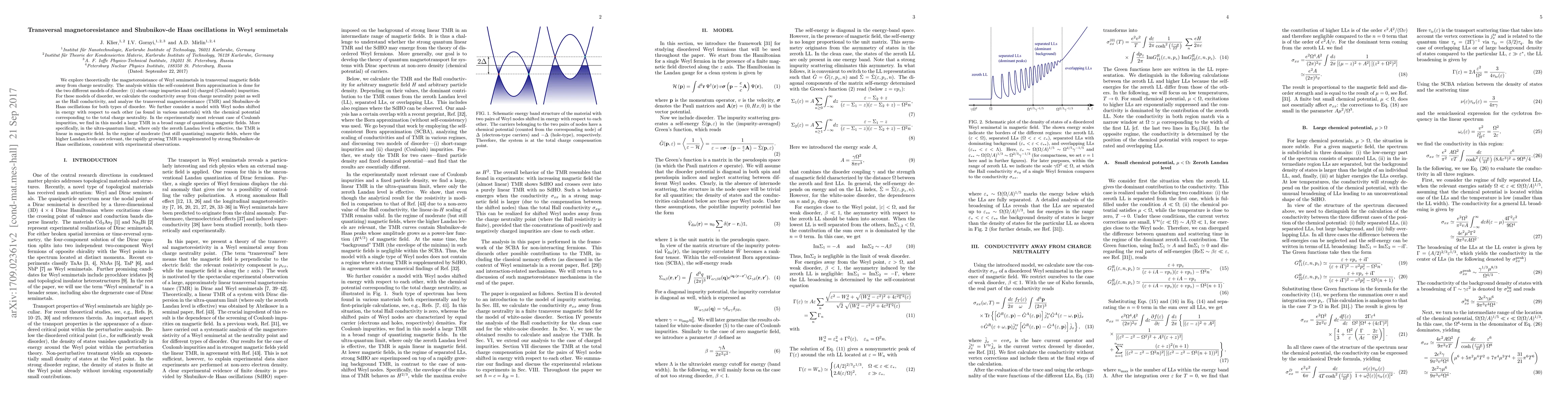 This paper theoretically investigates the magnetoresistance and Shubnikov-de Haas oscillations in Weyl semimetals under transversal magnetic fields, analyzing the effects of short-range and Coulomb impurities. It finds a significant transversal magnetoresistance in the presence of Coulomb impurities, with linear dependence in the ultra-quantum limit and strong oscillations at moderate magnetic fields.