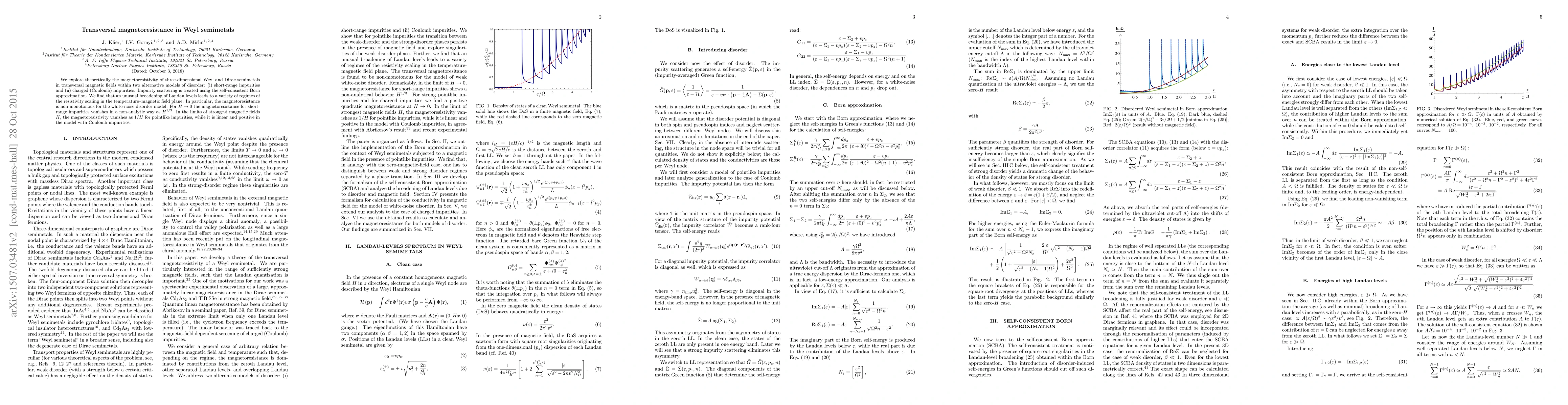We explore theoretically the magnetoresistvity of three-dimensional Weyl and Dirac semimetals in transversal magnetic fields within two alternative models of disorder: (i) short-range impurities and (ii) charged (Coulomb) impurities. Impurity scattering is treated using the self-consistent Born approximation. We find that an unusual broadening of Landau levels leads to a variety of regimes of the resistivity scaling in the temperature-magnetic field plane. In particular, the magnetoresitance is non-monotonous for the white-noise disorder model. For $H\to 0$ the magnetoresistance for short-range impurities vanishes in a non-analytic way as $H^{1/3}$. In the limits of strongest magnetic fields $H$, the magnetoresistivity vanishes as $1/H$ for pointlike impurities, while it is linear and positive in the model with Coulomb impurities.