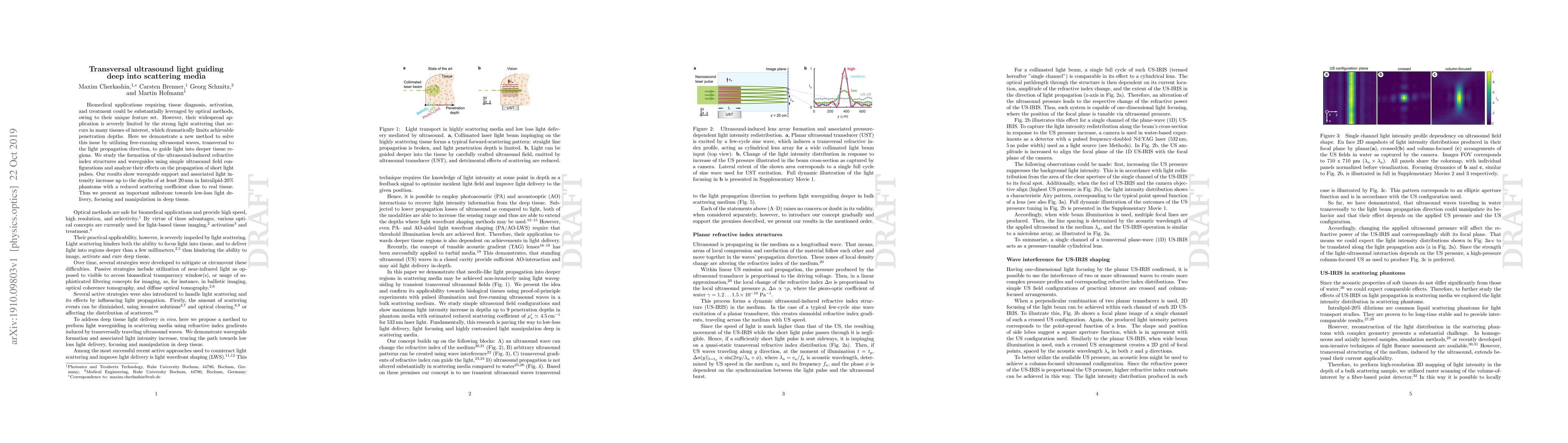 Researchers developed a method to guide light deeper into tissues using ultrasound waves, increasing penetration depth to 20mm in phantoms with reduced scattering.