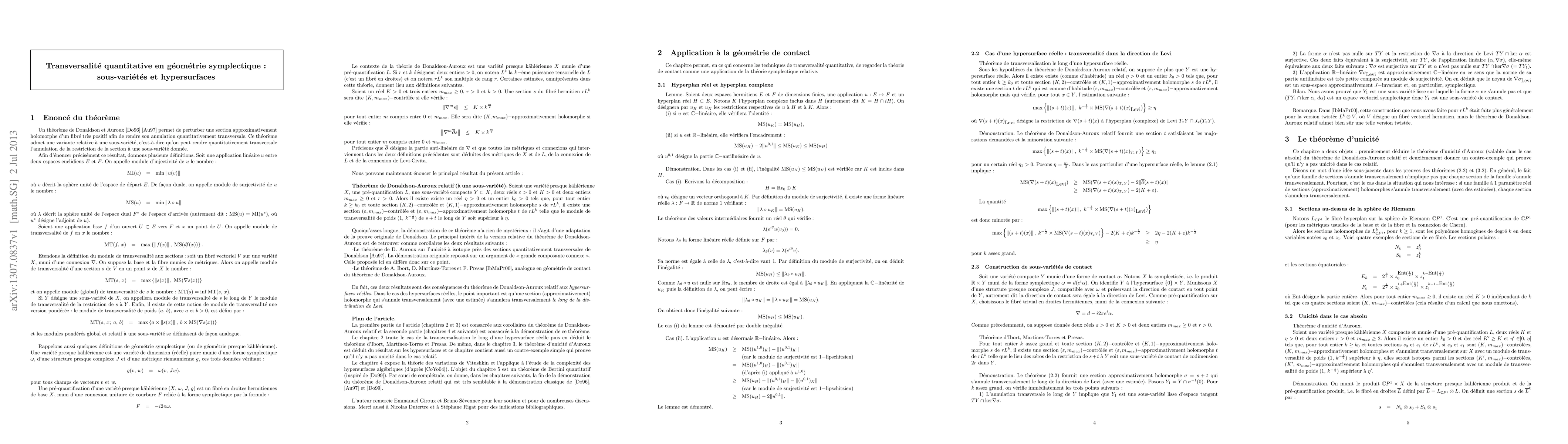 Le th\'eor\`eme principal de cet article est un r\'esultat de transversalit\'e quantitative relatif \`a une sous-vari\'et\'e. The main theorem of this paper is a result of estimated transversality with respect to a given submanifold.