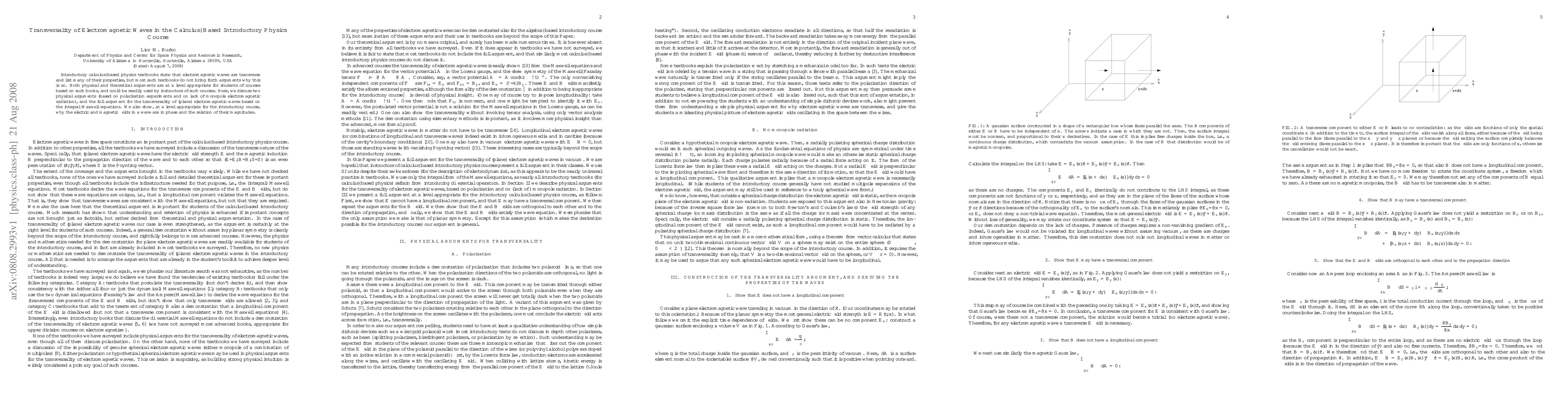 Introductory calculus-based physics textbooks state that electromagnetic waves are transverse and list many of their properties, but most such textbooks do not bring forth arguments why this is so. Both physical and theoretical arguments are at a level appropriate for students of courses based on such books, and could be readily used by instructors of such courses. Here, we discuss two physical arguments (based on polarization experiments and on lack of monopole electromagnetic radiation), and the full argument for the transversality of (plane) electromagnetic waves based on the integral Maxwell equations. We also show, at a level appropriate for the introductory course, why the electric and magnetic fields in a wave are in phase and the relation of their magnitudes.