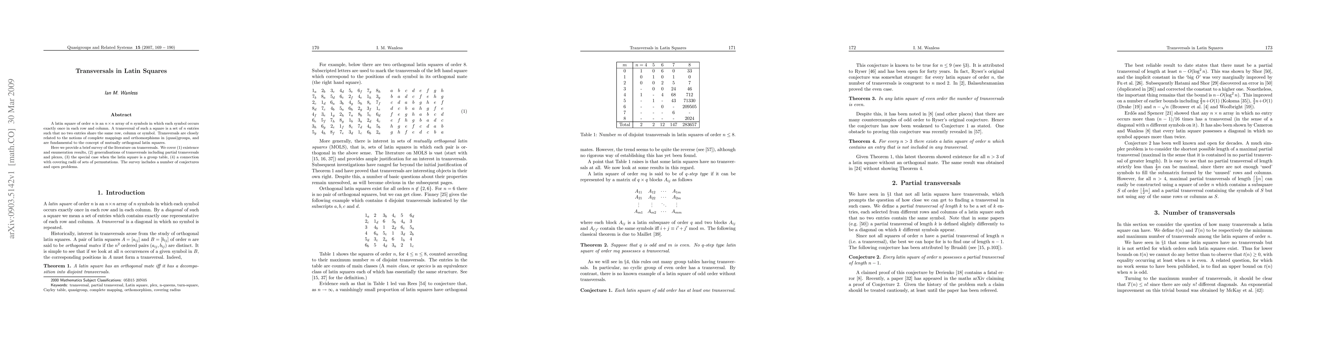 This paper surveys various aspects of transversals in latin squares, including their existence, enumeration, generalizations like partial transversals and plexes, and their connections to group tables and covering radii of permutation sets, highlighting several open problems and conjectures.