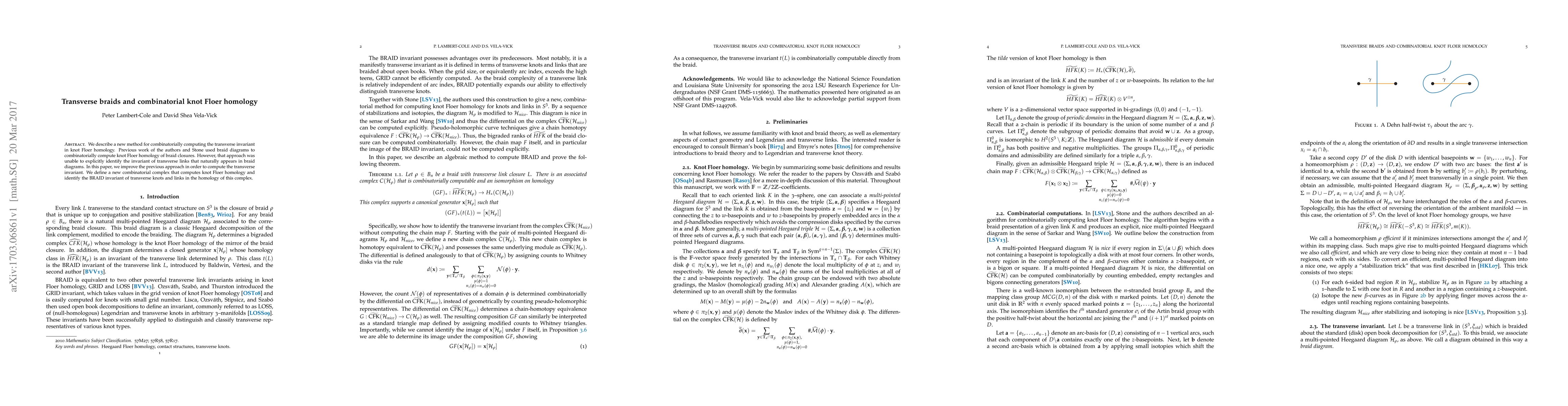 This paper introduces a novel method for computing the transverse invariant in knot Floer homology by refining previous techniques using braid diagrams. It defines a new combinatorial complex to explicitly identify the BRAID invariant of transverse knots and links.