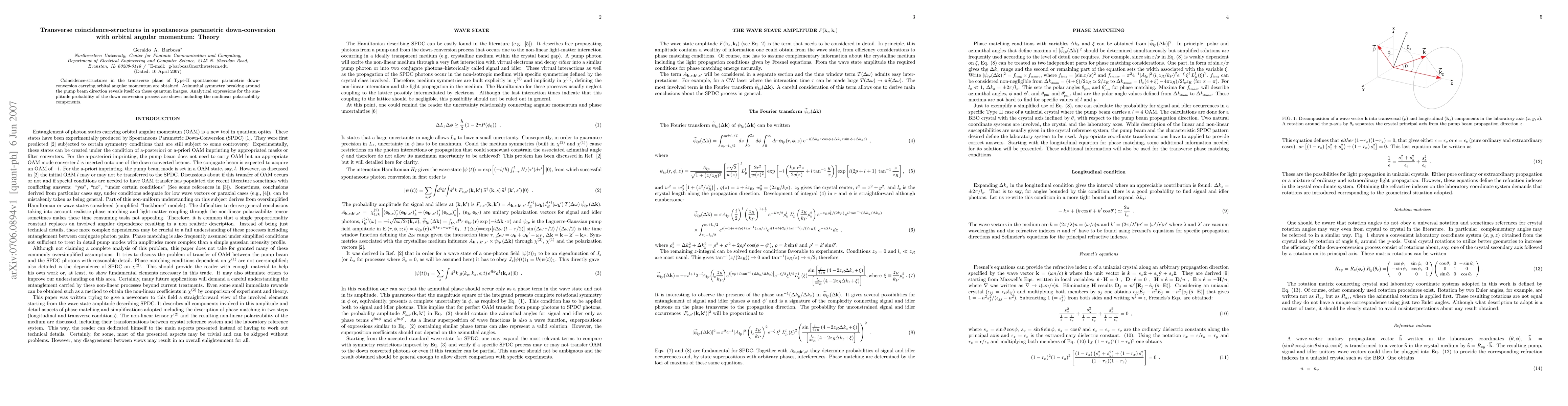 Summary: This paper investigates coincidence-structures in the transverse plane of Type-II spontaneous parametric down-conversion involving orbital angular momentum, demonstrating azimuthal symmetry breaking and providing analytical expressions for the amplitude probability including nonlinear polarizability components.