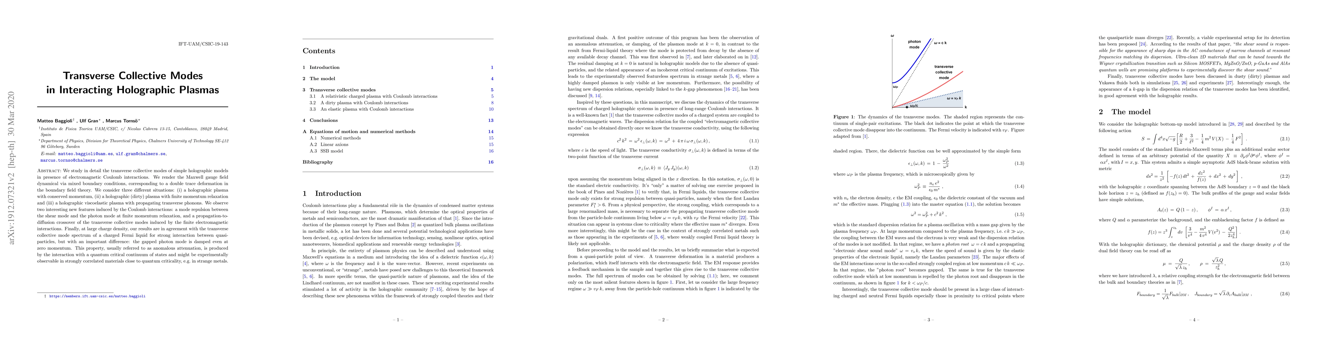 This paper investigates transverse collective modes in holographic plasmas with electromagnetic Coulomb interactions, revealing mode repulsion and a propagation-to-diffusion crossover. It also finds anomalous attenuation of the photon mode at large charge density, suggesting potential experimental observations in strongly correlated materials.