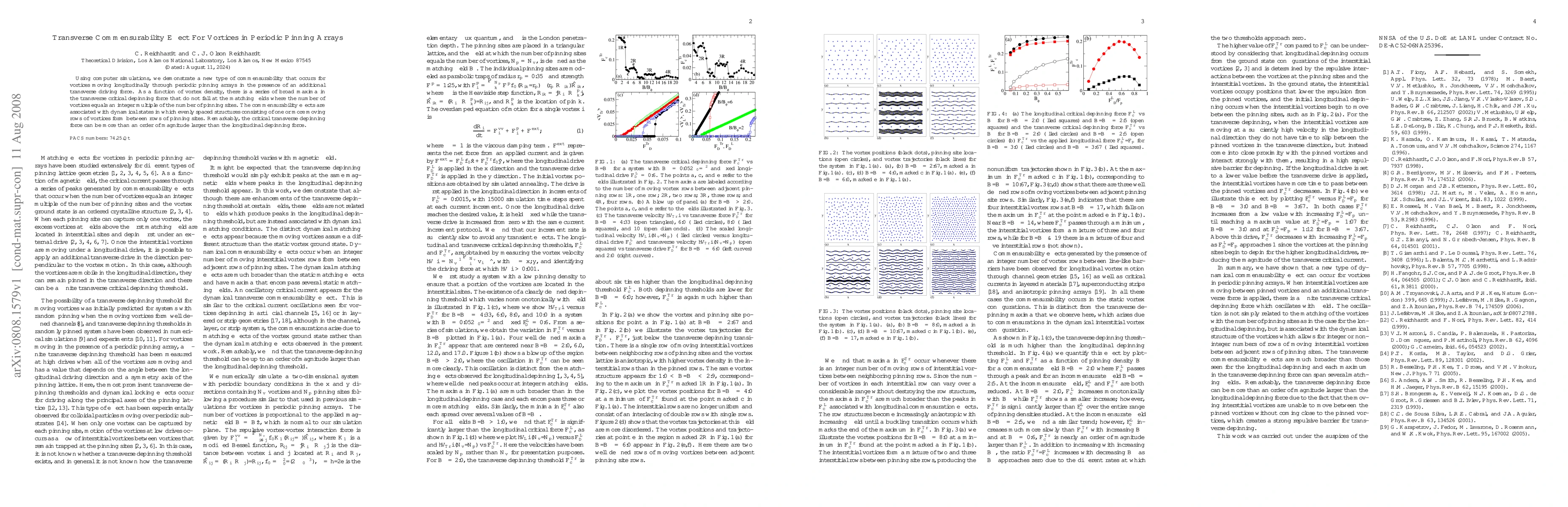 Title: Transverse Commensurability Effect for Vortices in Periodic Pinning Arrays Summary: Computer simulations reveal a unique commensurability effect in periodic pinning arrays where transverse driving forces lead to broad maxima in the transverse critical depinning force, even when vortex density does not match pinning site multiples, resulting in significantly higher transverse depinning forces compared to longitudinal forces.