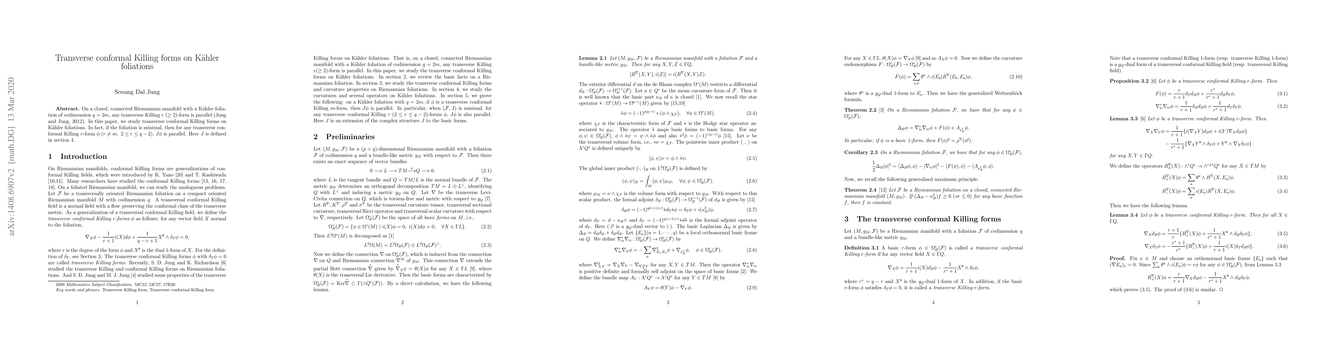This paper investigates transverse conformal Killing forms on Kähler foliations and proves that if the foliation is minimal, any transverse conformal Killing form of degree $r$ (where $2 \leq r \leq q-2$) is such that $J\phi$ is parallel, where $J$ is defined in Section 4.