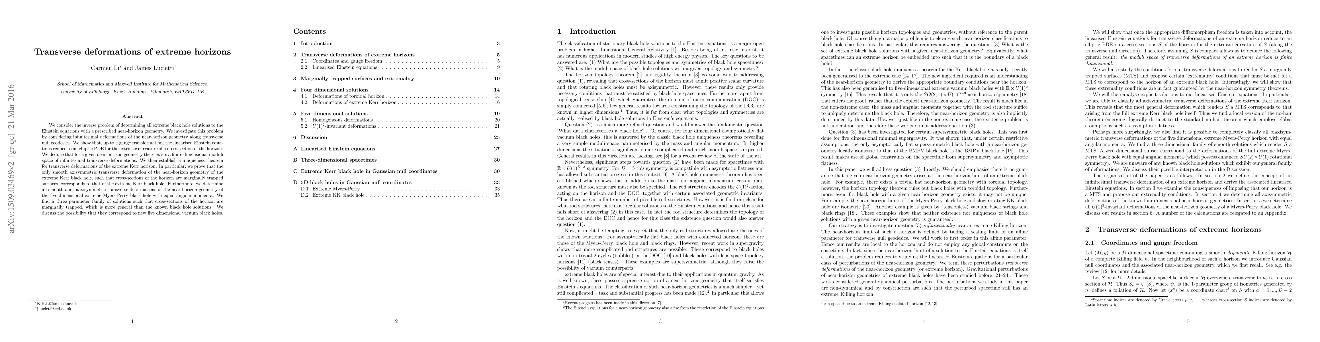 We consider the inverse problem of determining all extreme black hole solutions to the Einstein equations with a prescribed near-horizon geometry. We investigate this problem by considering infinitesimal deformations of the near-horizon geometry along transverse null geodesics. We show that, up to a gauge transformation, the linearised Einstein equations reduce to an elliptic PDE for the extrinsic curvature of a cross-section of the horizon. We deduce that for a given near-horizon geometry there exists a finite dimensional moduli space of infinitesimal transverse deformations. We then establish a uniqueness theorem for transverse deformations of the extreme Kerr horizon. In particular, we prove that the only smooth axisymmetric transverse deformation of the near-horizon geometry of the extreme Kerr black hole, such that cross-sections of the horizon are marginally trapped surfaces, corresponds to that of the extreme Kerr black hole. Furthermore, we determine all smooth and biaxisymmetric transverse deformations of the near-horizon geometry of the five-dimensional extreme Myers-Perry black hole with equal angular momenta. We find a three parameter family of solutions such that cross-sections of the horizon are marginally trapped, which is more general than the known black hole solutions. We discuss the possibility that they correspond to new five dimensional vacuum black holes.