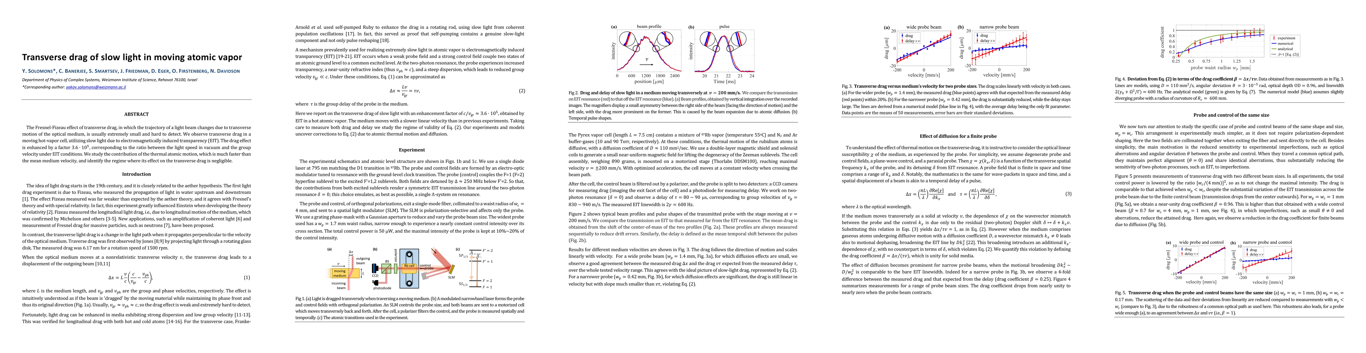 The Fresnel-Fizeau effect of transverse drag, in which the trajectory of a light beam changes due to transverse motion of the optical medium, is usually extremely small and hard to detect. We observe transverse drag in a moving hot-vapor cell, utilizing slow light due to electromagnetically induced transparency (EIT). The drag effect is enhanced by a factor 360,000, corresponding to the ratio between the light speed in vacuum and the group velocity under EIT conditions. We study the contribution of the thermal atomic motion, which is much faster than the mean medium velocity, and identify the regime where its effect on the transverse drag is negligible.