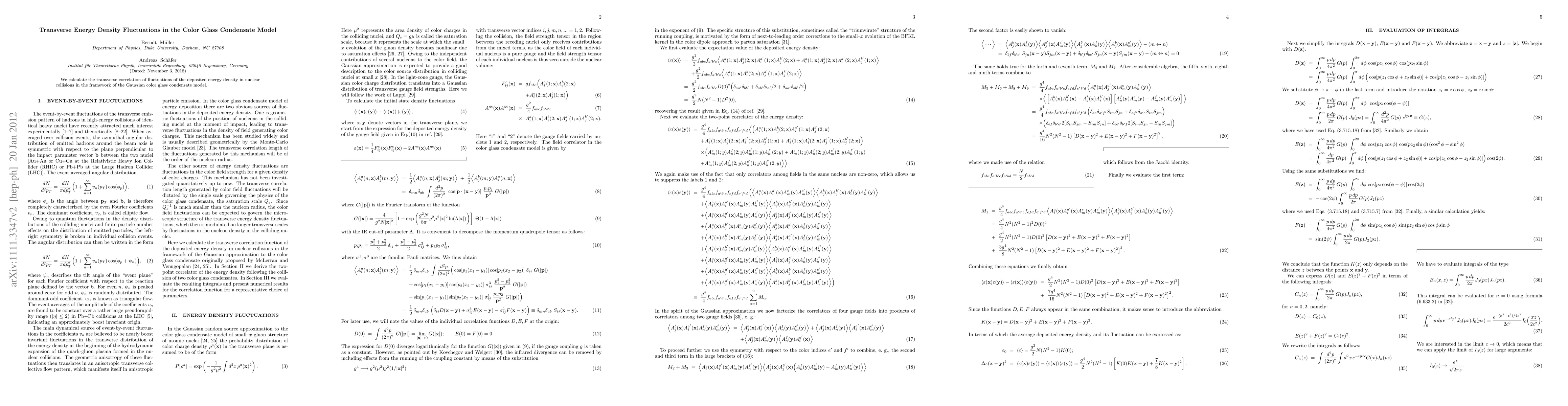 Summary: This paper investigates the transverse energy density fluctuations in nuclear collisions using the Gaussian color glass condensate model, focusing on the correlation between deposited energy densities. The study aims to provide insights into the dynamics of high-energy nuclear interactions.