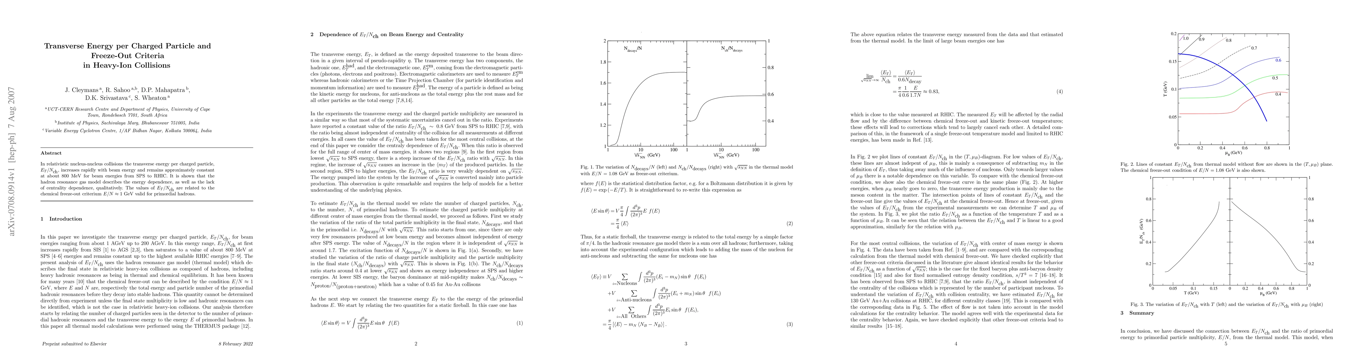 This paper investigates the transverse energy per charged particle in relativistic heavy-ion collisions, finding it remains constant at around 800 MeV across various beam energies. The study demonstrates that the hadron resonance gas model provides a qualitative description of this energy dependence and centrality independence.