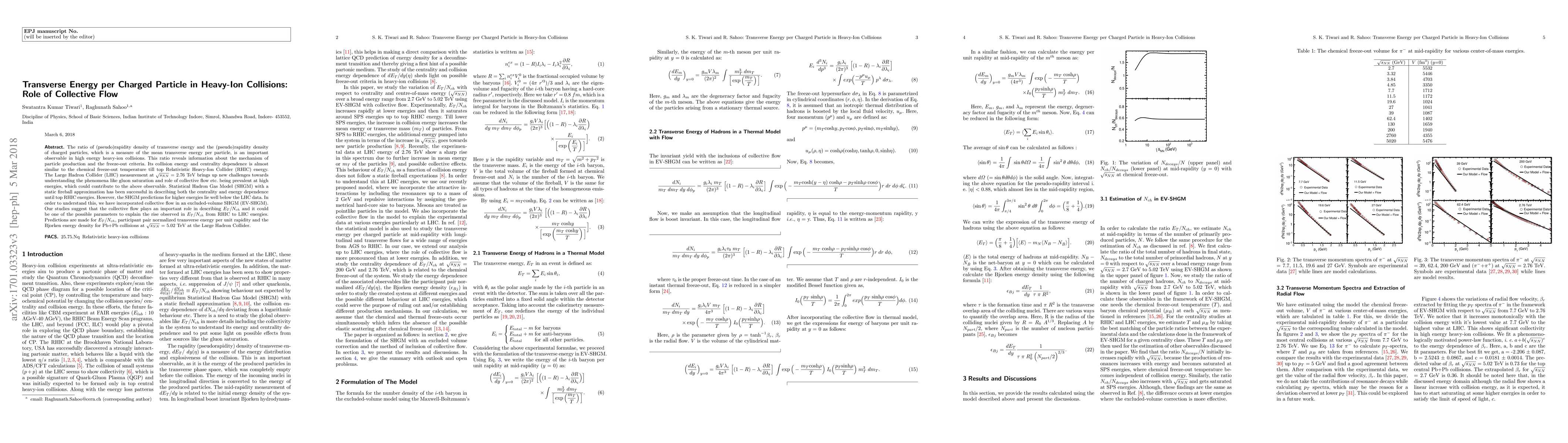 This paper investigates the transverse energy per charged particle in heavy-ion collisions, finding that collective flow significantly influences the observed ratio. The study suggests that incorporating radial flow into the Statistical Hadron Gas Model can better explain the energy dependence and the observed jump in this ratio from RHIC to LHC energies.
