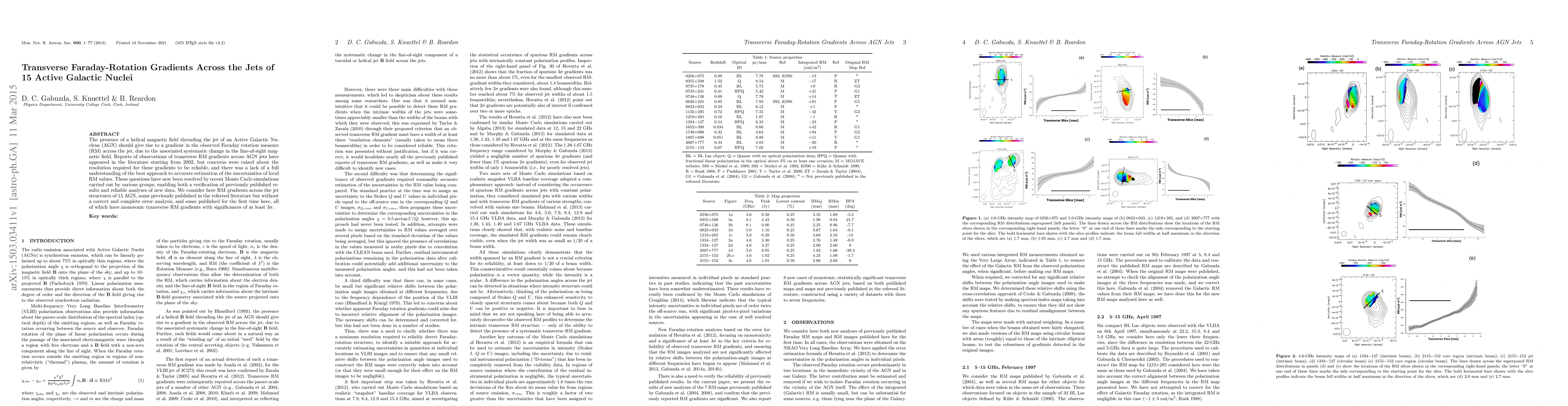 The presence of a helical magnetic field threading the jet of an Active Galactic Nucleus (AGN) should give rise to a gradient in the observed Faraday rotation measure (RM) across the jet, due to the associated systematic change in the line-of-sight magnetic field. Reports of observations of transverse RM gradients across AGN jets have appeared in the literature starting from 2002, but concerns were raised about the resolution required for these gradients to be reliable, and there was a lack of a full understanding of the best approach to accurate estimation of the uncertainties of local RM values. These questions have now been resolved by recent Monte Carlo simulations carried out by various groups, enabling both a verification of previously published results and reliable analyses of new data. We consider here RM gradients across the jet structures of 15 AGN, some previously published in the refereed literature but without a correct and complete error analysis, and some published for the first time here, all of which have monotonic transverse RM gradients with significances of at least 3 sigma.