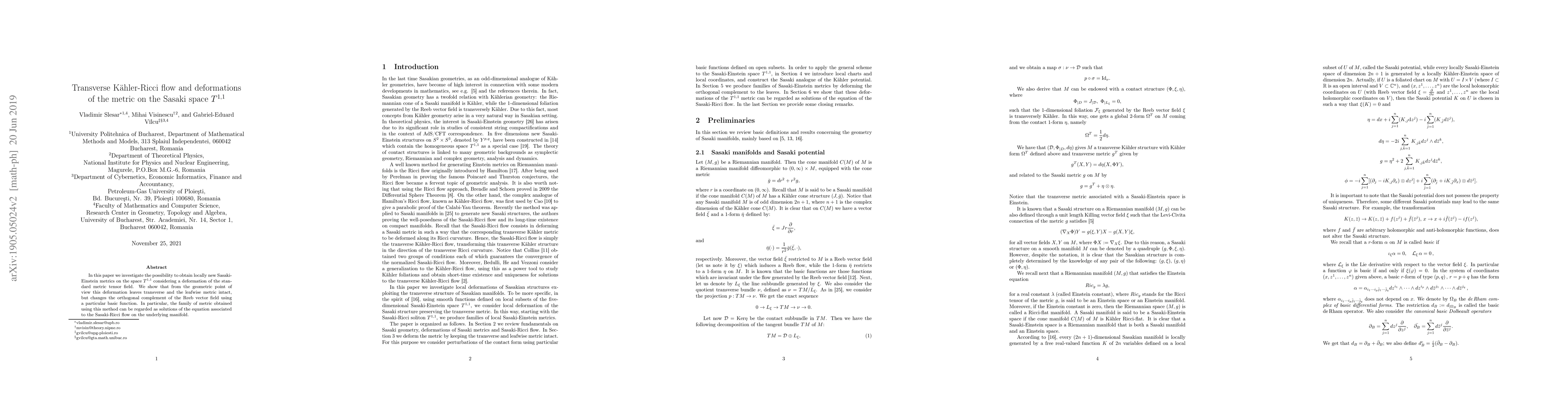 In this paper we investigate the possibility to obtain locally new Sasaki-Einstein metrics on the space $T^{1,1}$ considering a deformation of the standard metric tensor field. We show that from the geometric point of view this deformation leaves transverse and the leafwise metric intact, but changes the orthogonal complement of the Reeb vector field using a particular basic function. In particular, the family of metric obtained using this method can be regarded as solutions of the equation associated to the Sasaki-Ricci flow on the underlying manifold.