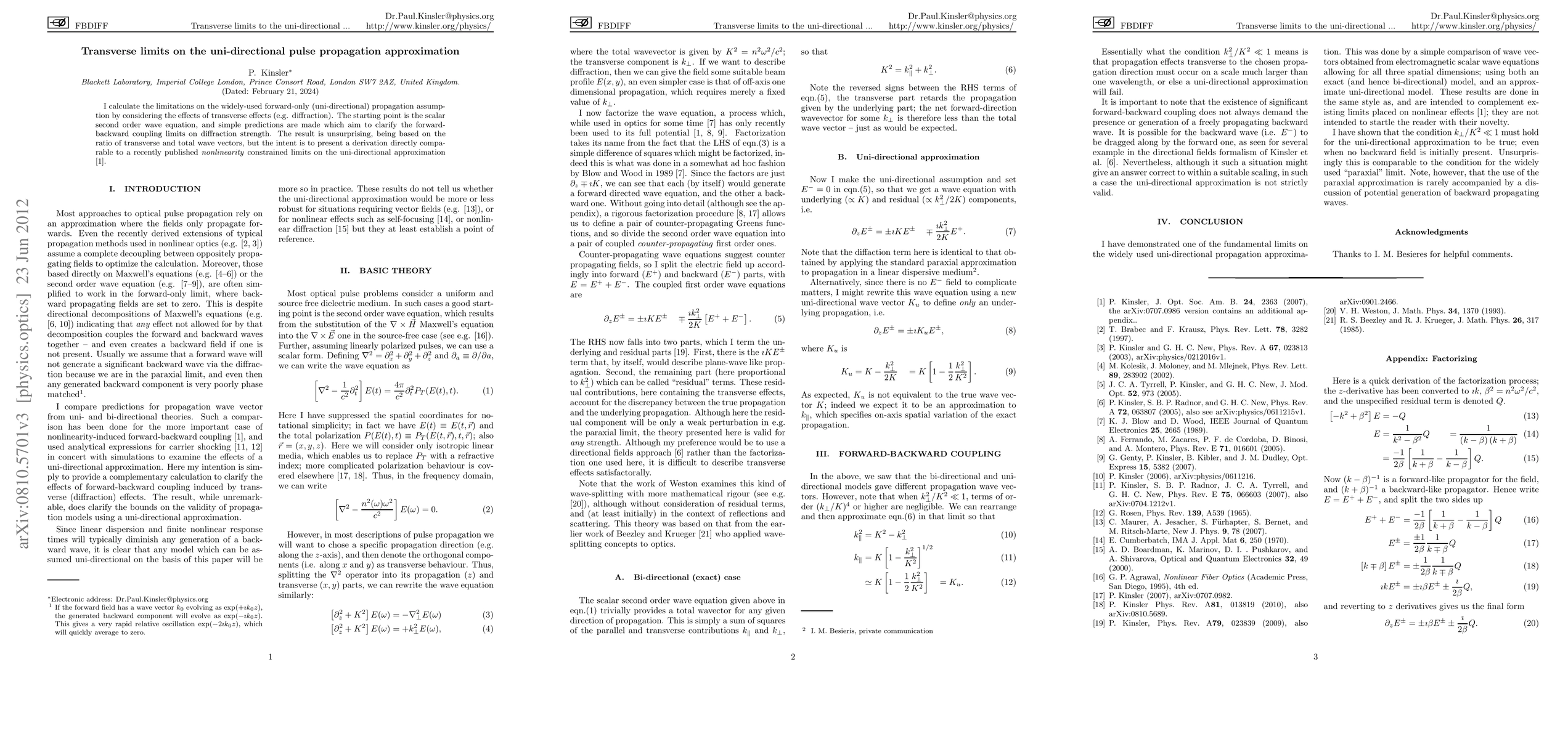This paper examines the limitations of the uni-directional pulse propagation approximation by analyzing transverse effects like diffraction. It derives limits based on the ratio of transverse to total wave vectors, comparable to recent nonlinear constraints, aiming to clarify forward-backward coupling in diffraction strength.
