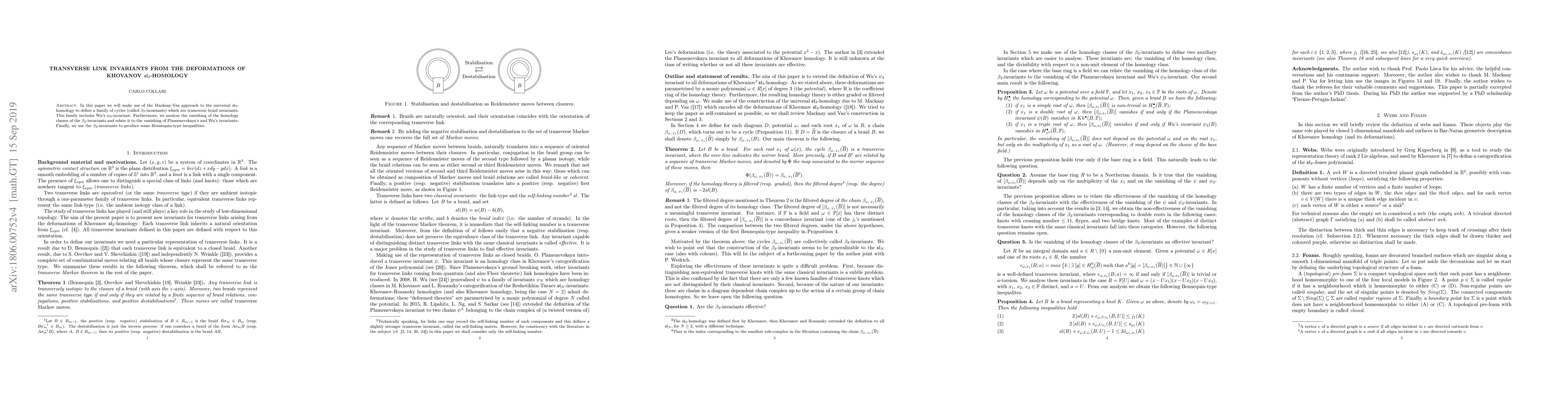 In this paper we will make use of the Mackaay-Vaz approach to the universal $\mathfrak{sl}_3$-homology to define a family of cycles (called $\beta_3$-invariants) which are transverse braid invariants. This family includes Wu's $\psi_{3}$-invariant. Furthermore, we analyse the vanishing of the homology classes of the $\beta_3$-invariants and relate it to the vanishing of Plamenevskaya's and Wu's invariants. Finally, we use the $\beta_3$-invariants to produce some Bennequin-type inequalities.