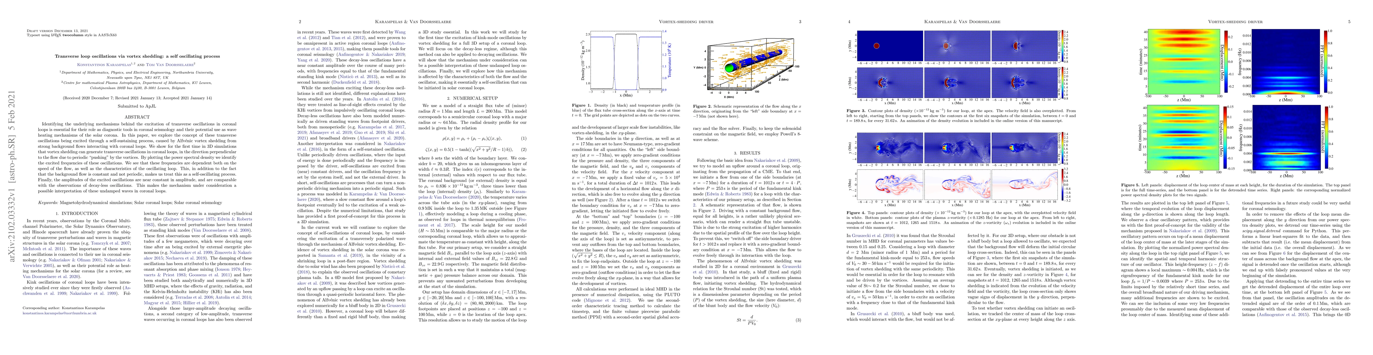 This paper investigates the self-oscillating transverse loop oscillations in coronal loops caused by Alfvénic vortex shedding from strong background flows. The study shows through 3D simulations that vortex shedding can generate undamped transverse oscillations, with frequencies dependent on flow speed and loop characteristics.