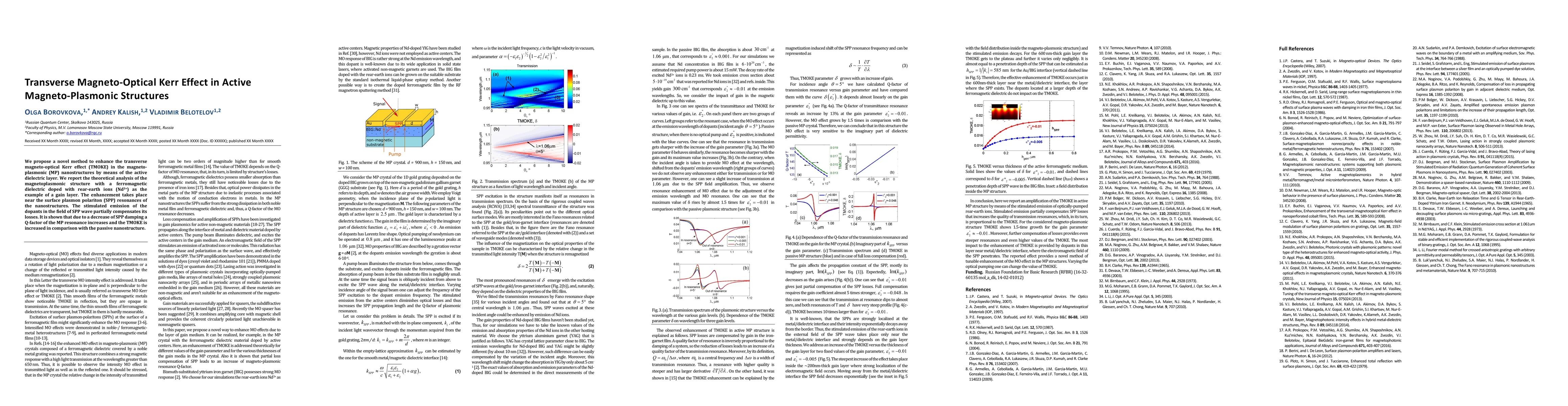 This paper proposes a method to enhance the transverse magneto-optical Kerr effect (TMOKE) in magneto-plasmonic nanostructures using an active dielectric layer. The theoretical analysis shows that doping a ferromagnetic dielectric with rear-earth ions (Nd3+) can increase the TMOKE by reducing surface plasmon polariton damping and enhancing the Q-factor of the MP resonance.
