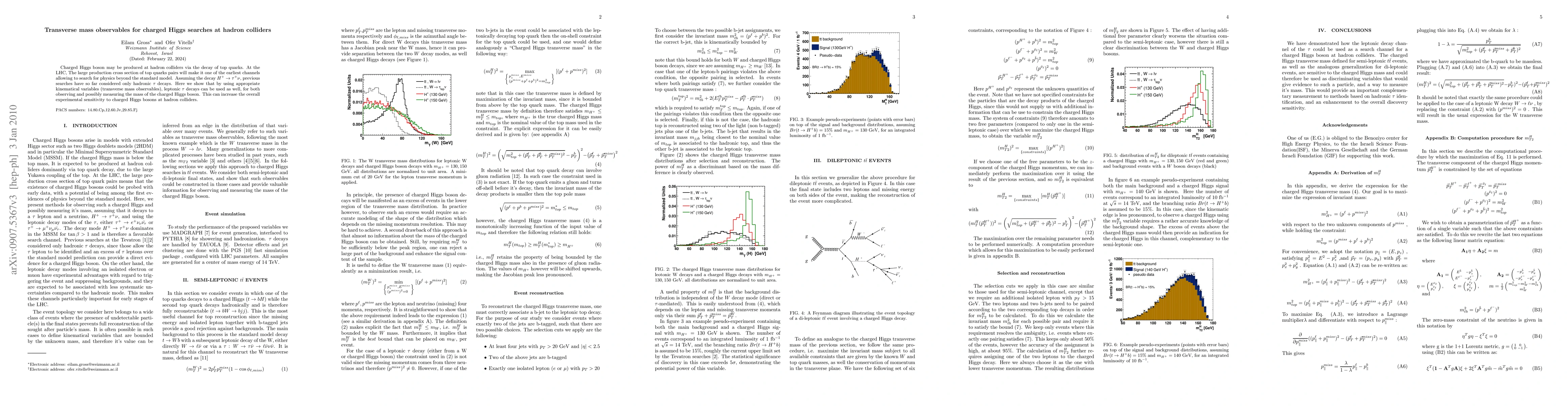 This paper explores the use of transverse mass observables for detecting charged Higgs bosons at hadron colliders, focusing on the decay $H^+ \to \tau^+\nu$. It proposes that both hadronic and leptonic tau decays, when analyzed with these kinematical variables, can enhance the search sensitivity and potentially measure the charged Higgs mass.