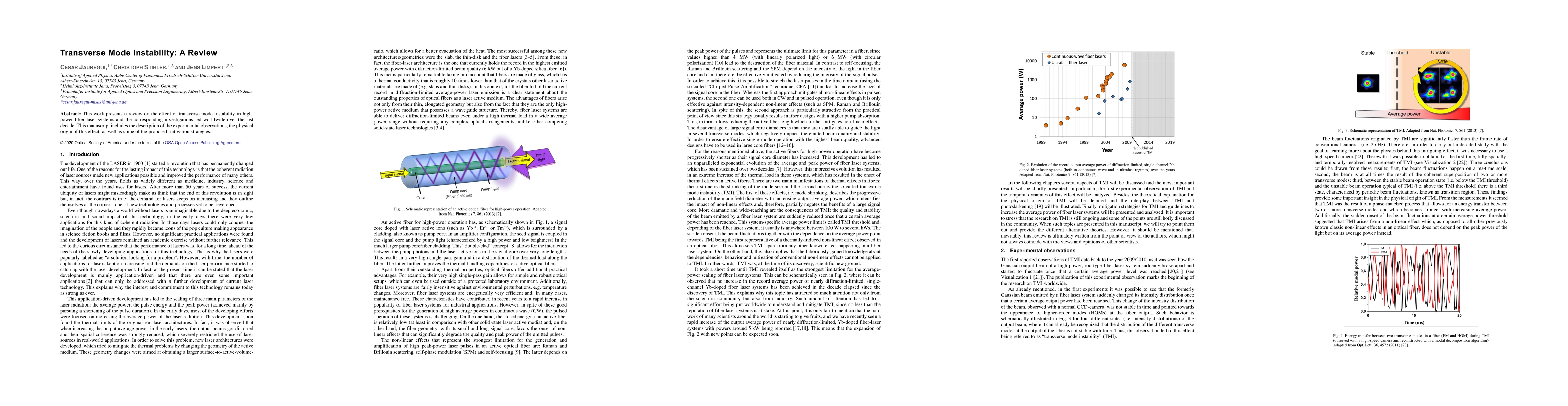 This paper reviews transverse mode instability in high-power fiber lasers, its physical origin, and proposed mitigation strategies, highlighting key findings for laser system stability.
