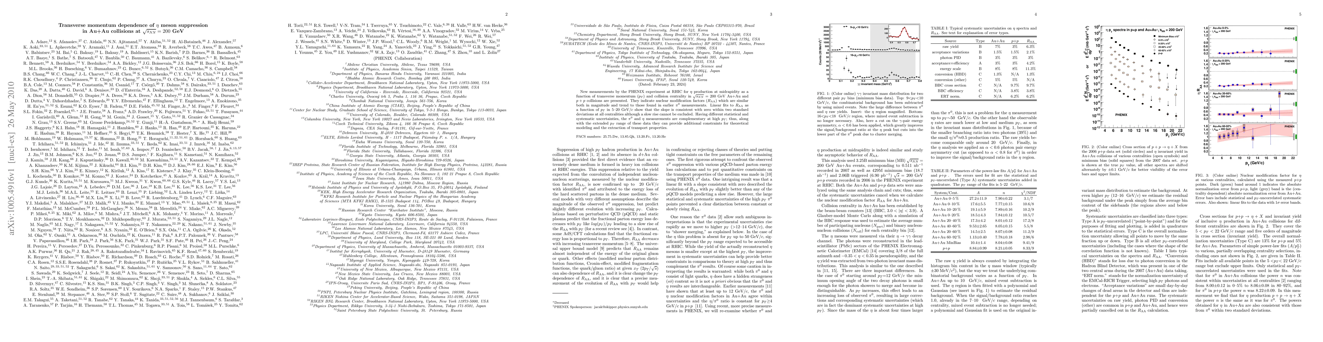 The PHENIX experiment reports new measurements of eta meson suppression in Au+Au collisions at 200 GeV, showing similar nuclear modification factors to earlier pi^0 measurements. The data suggest no significant slope in the suppression trend at transverse momenta between 5-20 GeV/c, providing complementary high p_T data for theoretical modeling.