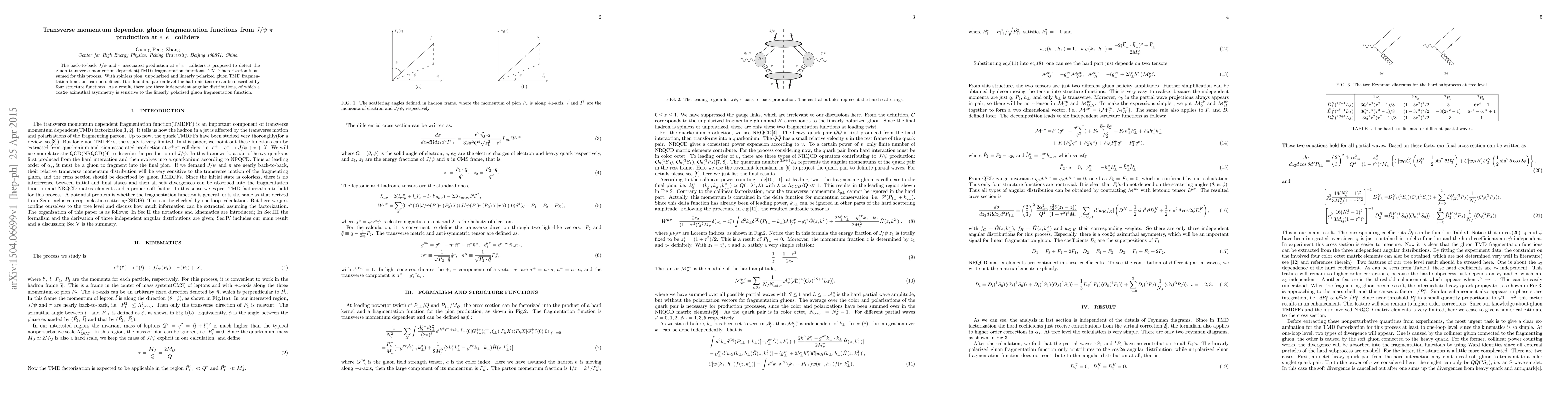 This paper explores the detection of transverse momentum dependent gluon fragmentation functions via $J/\psi\ \pi$ production in $e^+ e^-$ collisions, assuming TMD factorization. It identifies four structure functions in the hadronic tensor, with a $\cos{2\phi}$ azimuthal asymmetry indicating sensitivity to linearly polarized gluon fragmentation functions.