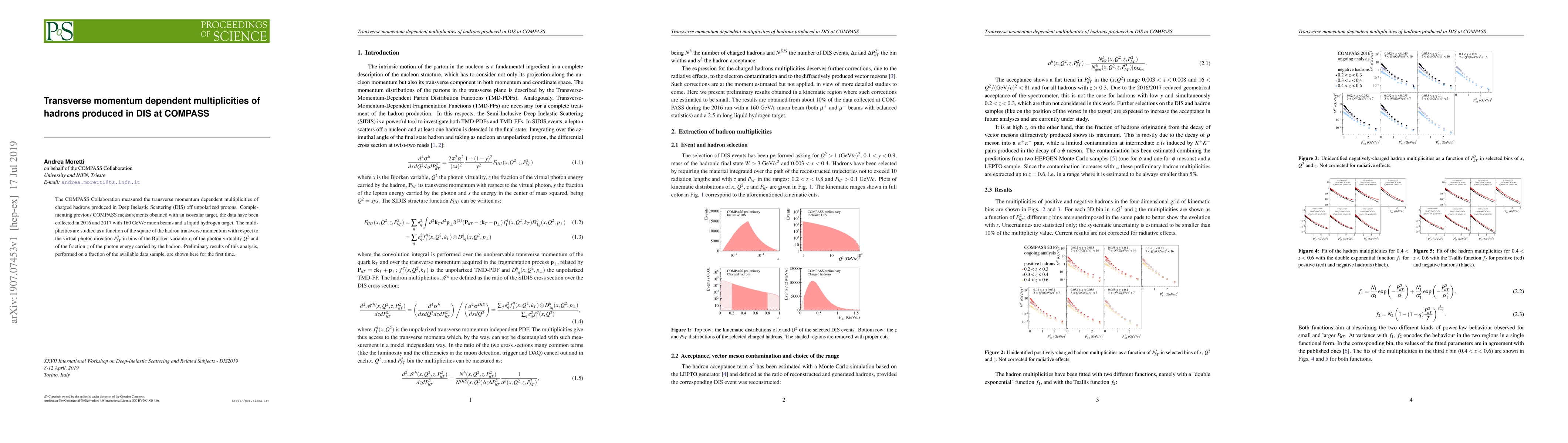 The COMPASS Collaboration analyzed transverse momentum dependent multiplicities of charged hadrons in Deep Inelastic Scattering off unpolarized protons, revealing preliminary results on how these multiplicities vary with the hadron's transverse momentum and other kinematic variables. These data were collected in 2016 and 2017 using 160 GeV/$c$ muon beams with a liquid hydrogen target.