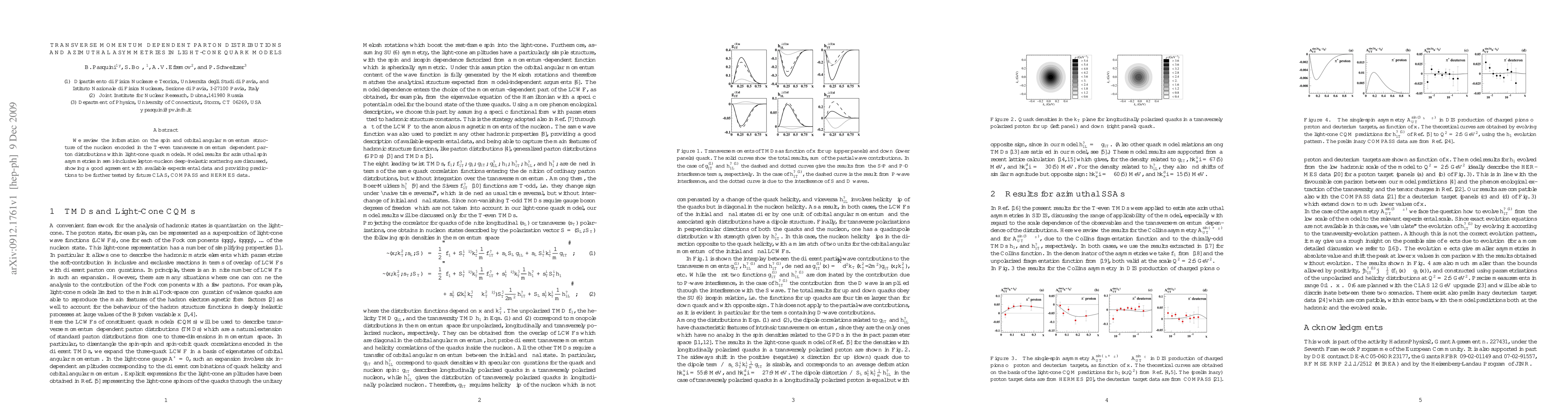 This paper reviews the nucleon's spin and orbital angular momentum structure through T-even transverse momentum dependent parton distributions in light-cone quark models. The model's predictions for azimuthal spin asymmetries in semi-inclusive deep-inelastic scattering align well with experimental data and offer new predictions for future validation.