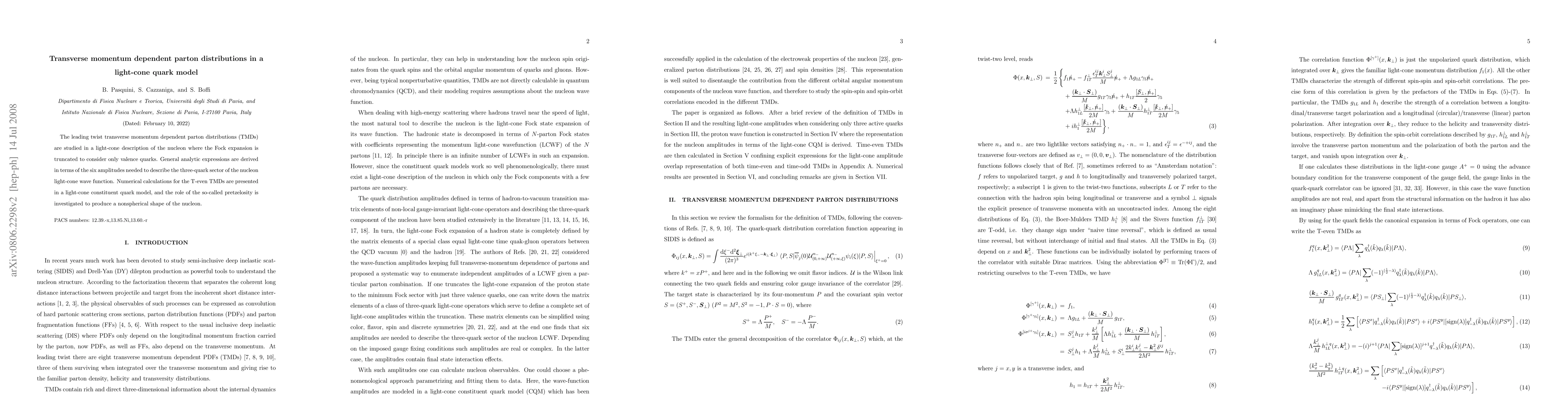 This paper derives general analytic expressions for leading twist transverse momentum dependent parton distributions (TMDs) in a light-cone quark model focusing on valence quarks. Numerical calculations in a light-cone constituent quark model explore the role of pretzelosity in creating a nonspherical nucleon shape.