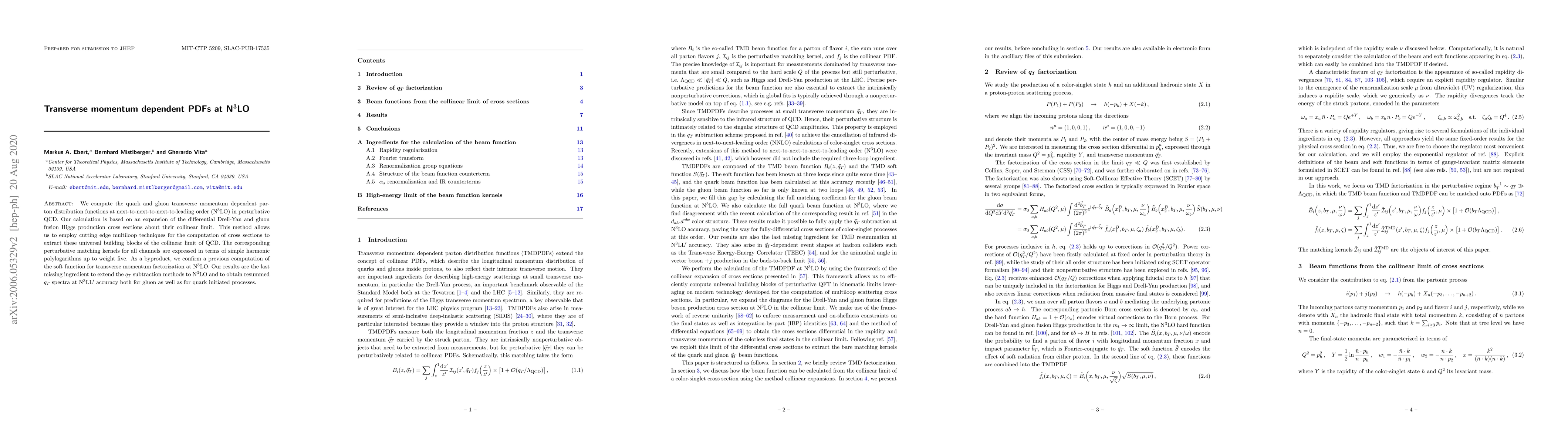 We compute the quark and gluon transverse momentum dependent parton distribution functions at next-to-next-to-next-to-leading order (N$^3$LO) in perturbative QCD. Our calculation is based on an expansion of the differential Higgs boson and Drell-Yan production cross sections about their collinear limit. This method allows us to employ cutting edge techniques for the computation of cross sections to extract the universal building blocks in question. The corresponding perturbative matching kernels for all channels are expressed in terms of simple harmonic polylogarithms up to weight five. As a byproduct, we confirm a previous computation of the soft function for transverse momentum factorization at N$^3$LO. Our results are the last missing ingredient to extend the $q_T$ subtraction methods to N$^3$LO and to obtain resummed $q_T$ spectra at N$^3$LL$^\prime$ accuracy both for gluon as well as for quark initiated processes.