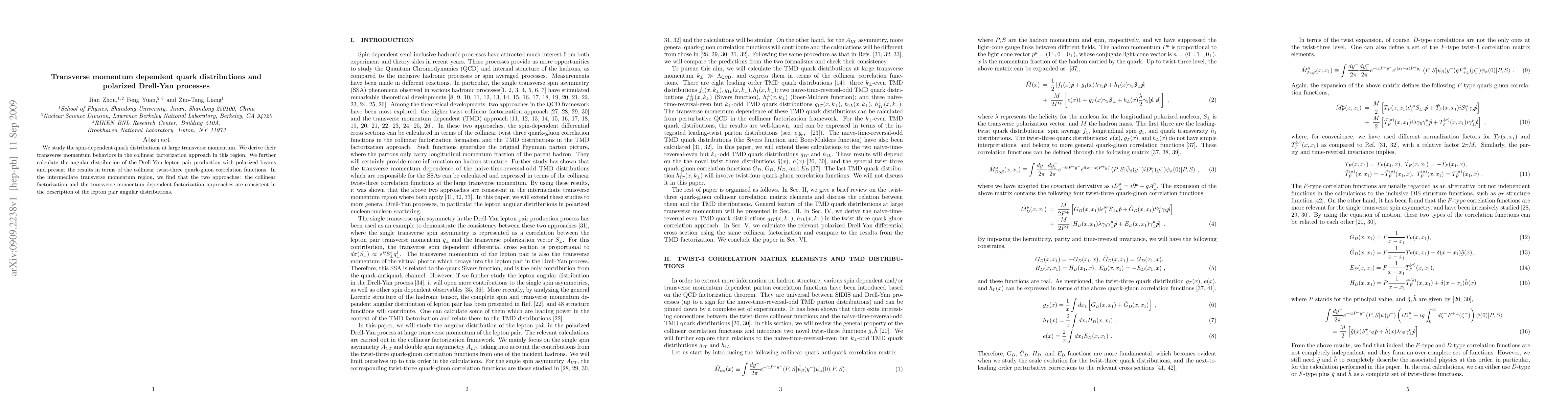 The research employs a twist-three collinear factorization approach to calculate transverse momentum dependent (TMD) quark distributions and angular distributions in polarized Drell-Yan processes. It involves the study of twist-three matrix elements and their gauge invariant combinations.