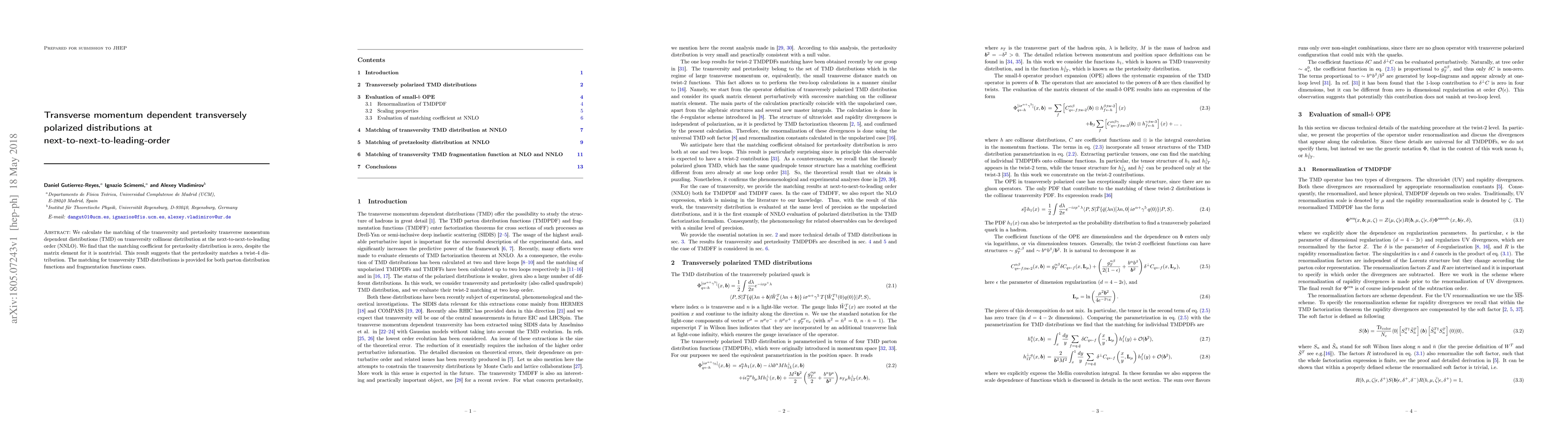 This paper calculates the next-to-next-to-leading-order (NNLO) matching for transverse momentum dependent distributions, finding that the pretzelosity distribution matches a twist-4 distribution while the transversity distribution matches at NNLO for both parton distribution and fragmentation functions.