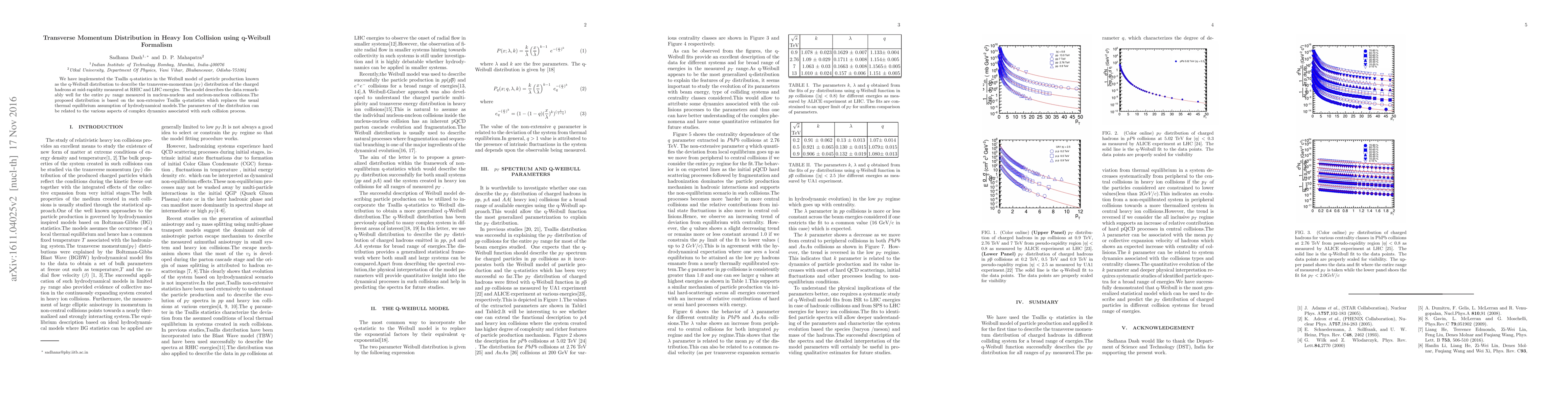 This paper uses the q-Weibull distribution, based on Tsallis q-statistics, to describe the transverse momentum distribution of charged hadrons in heavy ion collisions at RHIC and LHC energies. The model effectively fits the data across the entire measured pT range in both nucleus-nucleus and nucleon-nucleon collisions, offering insights into the complex dynamics of these processes.