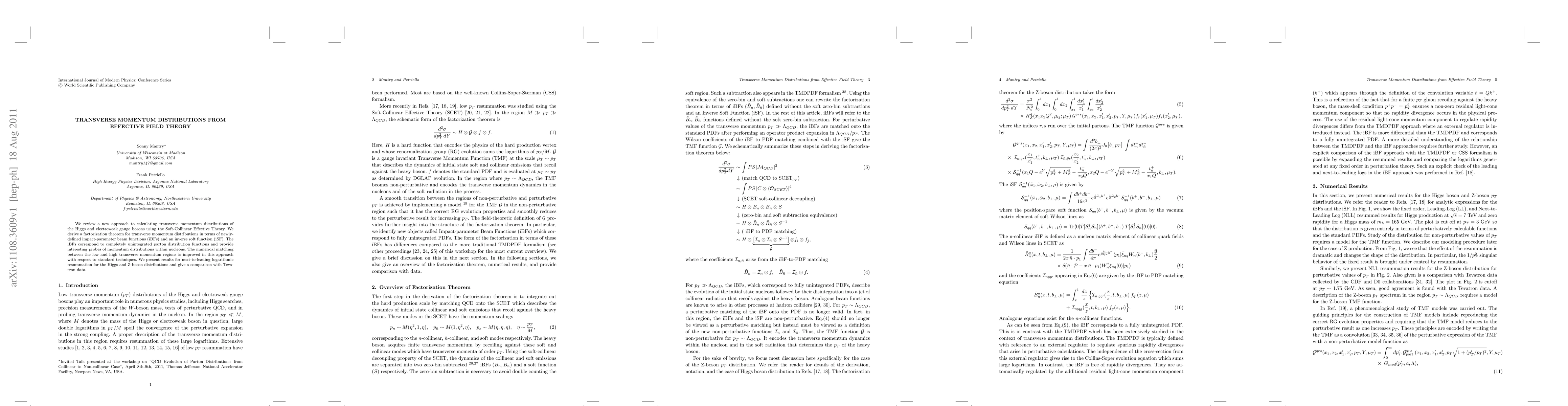 We review a new approach to calculating transverse momentum distributions of the Higgs and electroweak gauge bosons using the Soft-Collinear Effective Theory. We derive a factorization theorem for transverse momentum distributions in terms of newly-defined impact-parameter beam functions (iBFs) and an inverse soft function (iSF). The iBFs correspond to completely unintegrated parton distribution functions and provide interesting probes of momentum distributions within nucleons. The numerical matching between the low and high transverse momentum regions is improved in this approach with respect to standard techniques. We present results for next-to-leading logarithmic resummation for the Higgs and Z-boson distributions and give a comparison with Tevatron data.