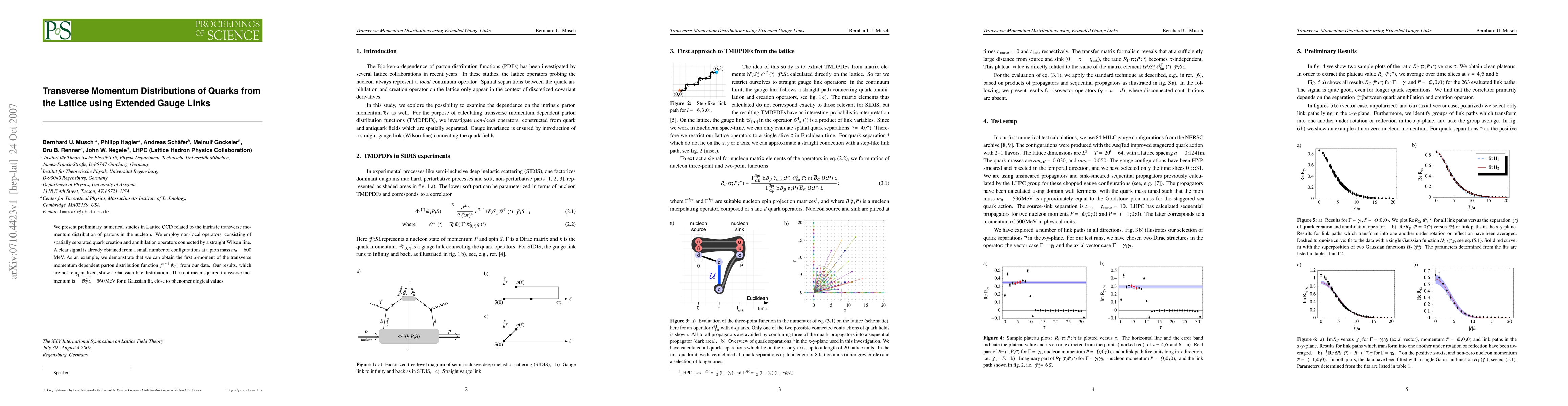 We present preliminary numerical studies in Lattice QCD related to the intrinsic transverse momentum distribution of partons in the nucleon. We employ non-local operators, consisting of spatially separated quark creation and annihilation operators connected by a straight Wilson line. A clear signal is already obtained from a small number of configurations at a pion mass of about 600 MeV. As an example, we demonstrate that we can obtain the first x-moment of the transverse momentum dependent parton distribution function f_1^{n=1}(k_T) from our data. Our results, which are not renormalized, show a Gaussian-like distribution. The root mean squared transverse momentum is about 560 MeV for a Gaussian fit, close to phenomenological values.