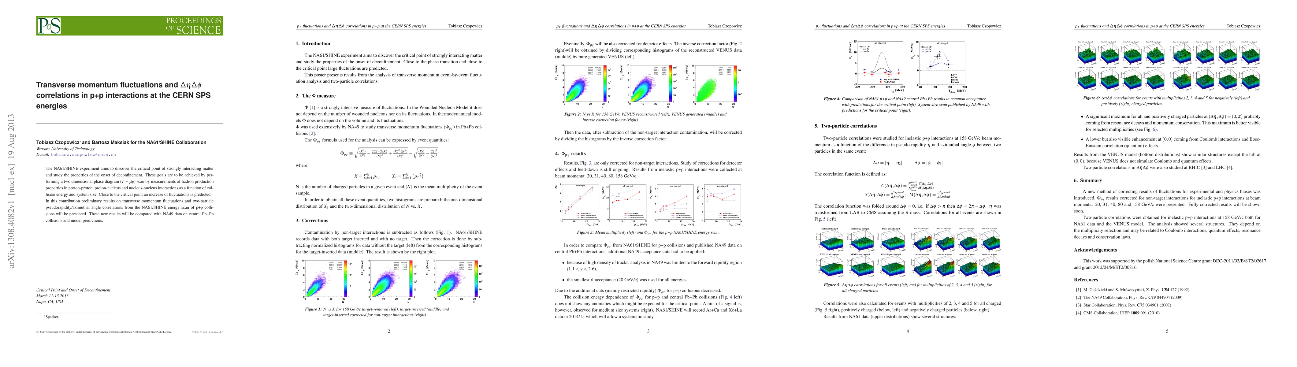This paper presents preliminary results from the NA61/SHINE experiment on transverse momentum fluctuations and \Delta\eta-\Delta\phi correlations in p+p interactions at CERN SPS energies, aiming to identify the critical point of strongly interacting matter. These findings are compared with NA49 data from central Pb+Pb collisions and theoretical models.