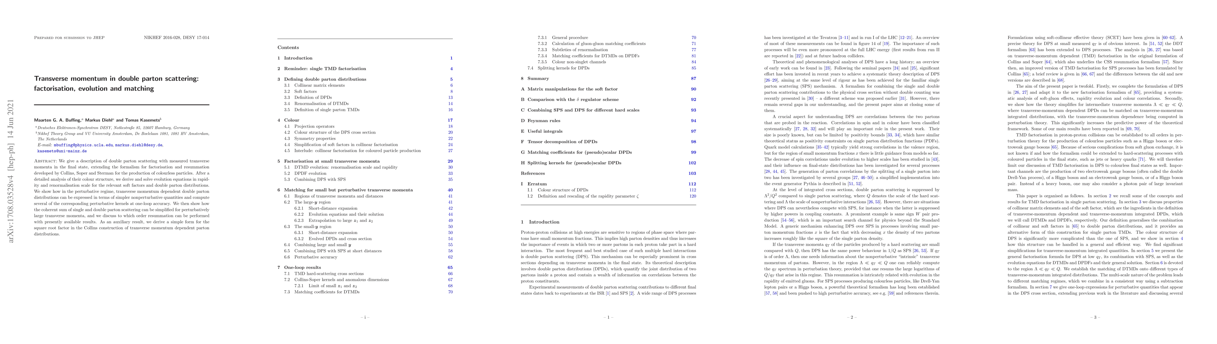 This paper extends the formalism for double parton scattering, focusing on transverse momentum in the final state. It derives evolution equations for soft factors and double parton distributions, and computes perturbative kernels at one-loop accuracy, simplifying the coherent sum for large transverse momenta.
