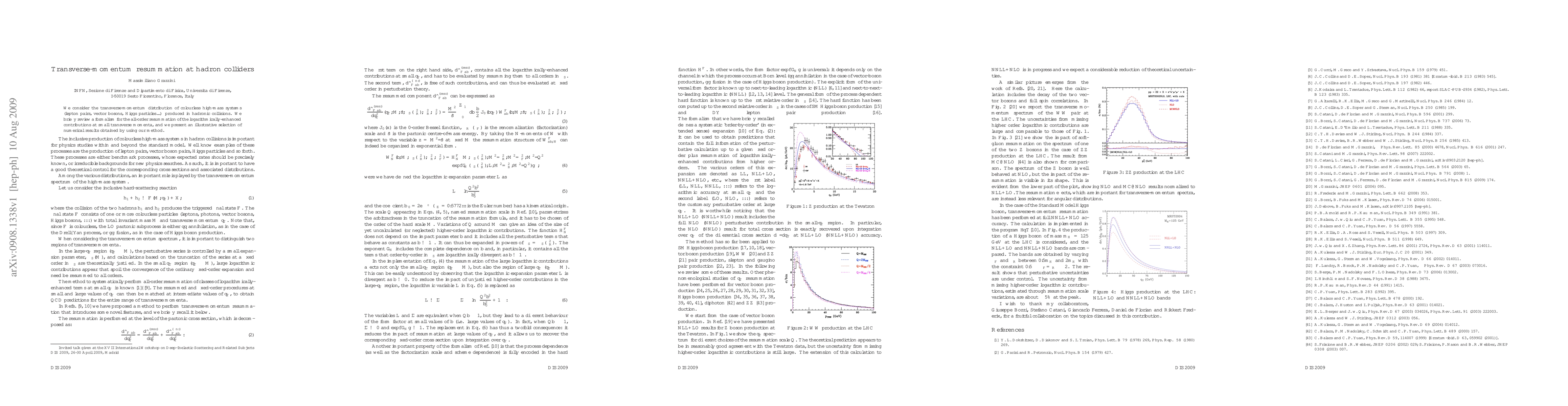This paper reviews a formalism for the all-order resummation of logarithmically enhanced contributions to the transverse-momentum distribution of high-mass colourless systems in hadron colliders, and presents numerical results demonstrating the effectiveness of the method.