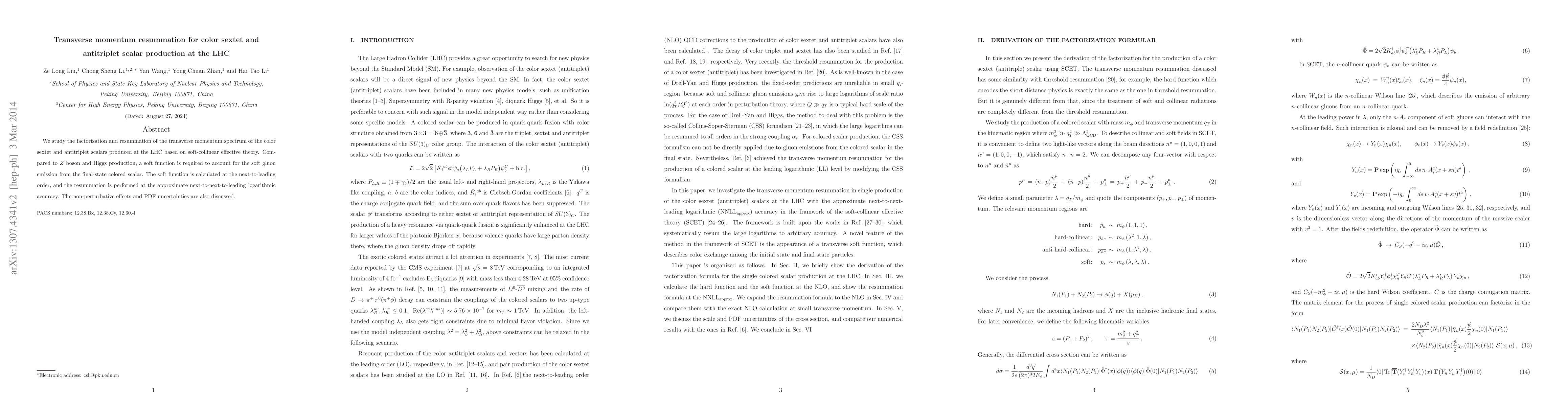 This paper investigates the transverse momentum spectrum of color sextet and antitriplet scalars produced at the LHC using soft-collinear effective theory. It calculates the soft function at next-to-leading order and performs resummation at approximate next-to-next-to-leading logarithmic accuracy, addressing non-perturbative effects and PDF uncertainties.