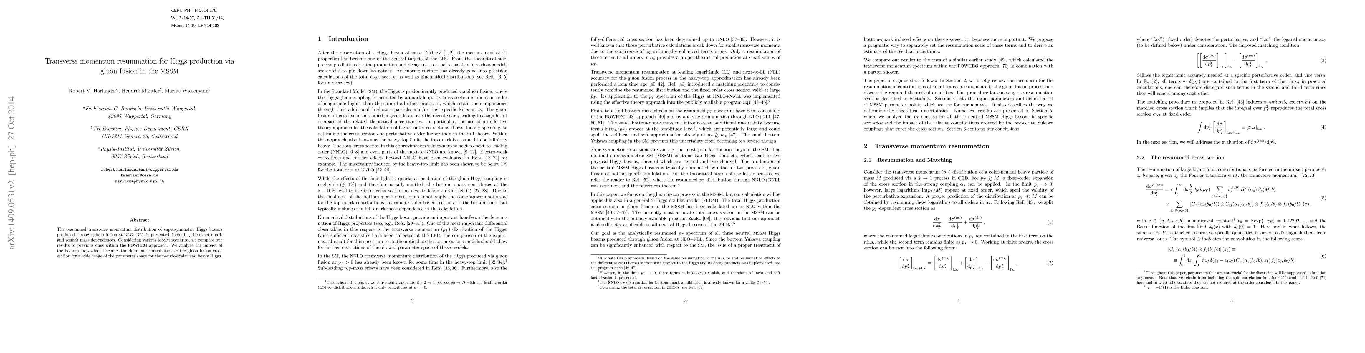 This paper presents a resummed transverse momentum distribution for supersymmetric Higgs production via gluon fusion in the MSSM, including exact mass dependencies. It compares these results to previous POWHEG approach findings and highlights the significant impact of the bottom quark loop on the cross section in various MSSM scenarios.