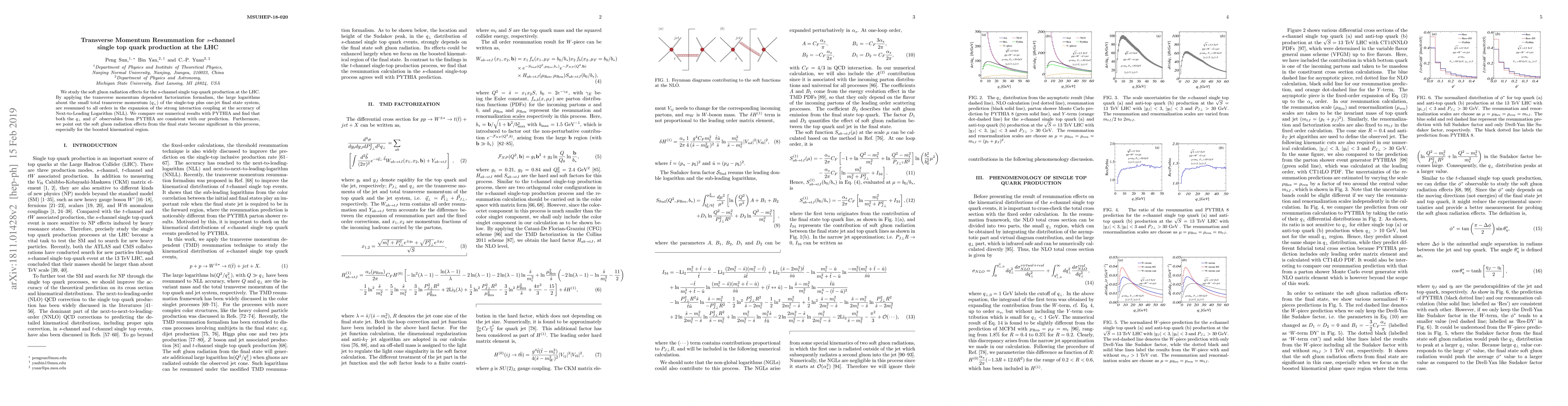 This paper investigates the soft gluon radiation effects in $s$-channel single top quark production at the LHC, employing transverse momentum dependent factorization to resum large logarithms to NLL accuracy. The study finds consistency between its predictions and PYTHIA simulations, highlighting the significance of soft gluon radiation in the boosted kinematic region.