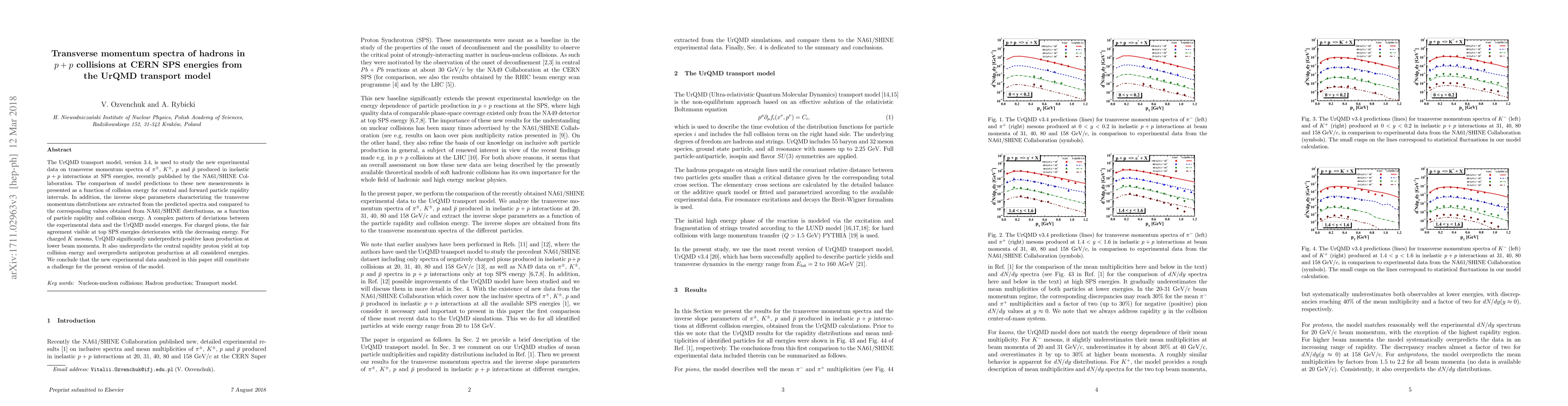 The UrQMD model is used to analyze transverse momentum spectra of various hadrons in $p+p$ collisions at SPS energies, comparing model predictions to new NA61/SHINE experimental data. The model shows fair agreement for pions at high energies but significant deviations for kaons and protons, indicating challenges for the current model version.