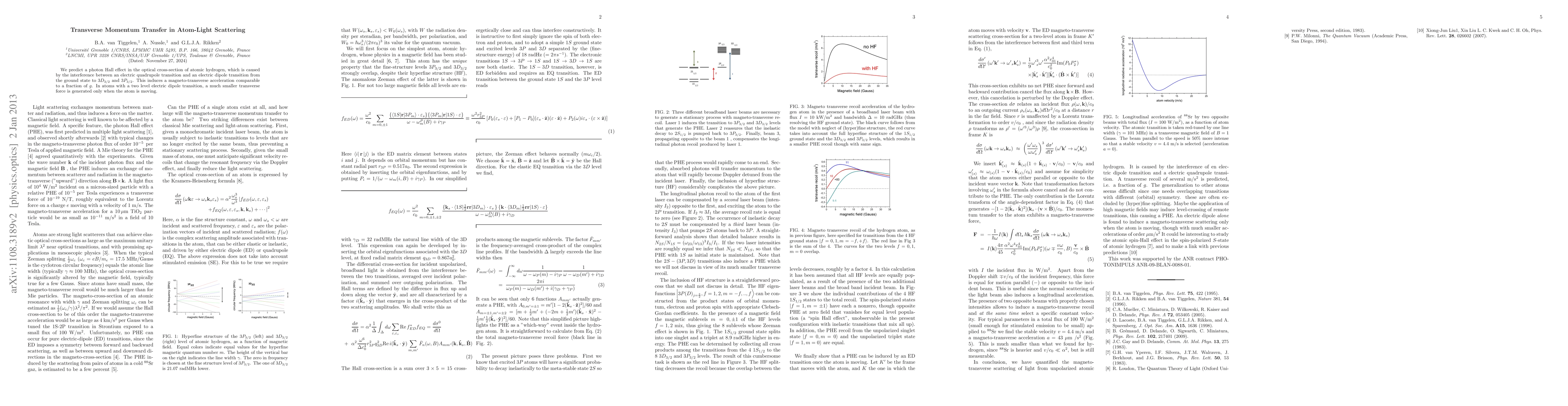 We predict a photon Hall effect in the optical cross-section of atomic hydrogen, which is caused by the interference between an electric quadrupole transition and an electric dipole transition from the ground state to $3D_{3/2}$ and $3P_{3/2}$. This induces a magneto-transverse acceleration comparable to a fraction of $g$. In atoms with a two level electric dipole transition, a much smaller transverse force is generated only when the atom is moving.